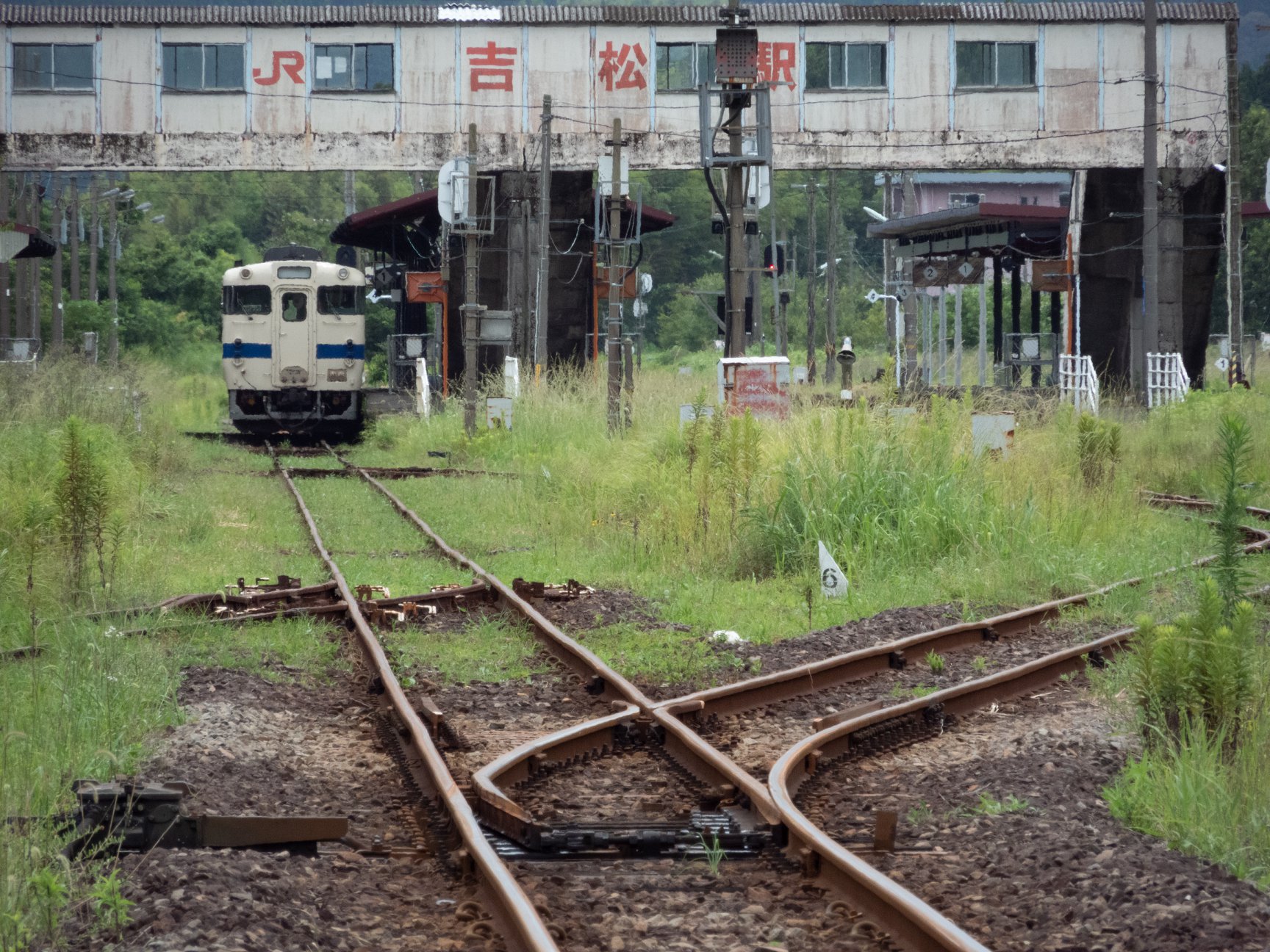 吉松駅に13:30には着いたが、次の列車までは2時間待ち。駅の隣の食堂兼売店は、食堂のみ夏期休業。他に食堂なんてない。R268のローソンまで戻って、あんまり暑いので、店内で弁当を食う。