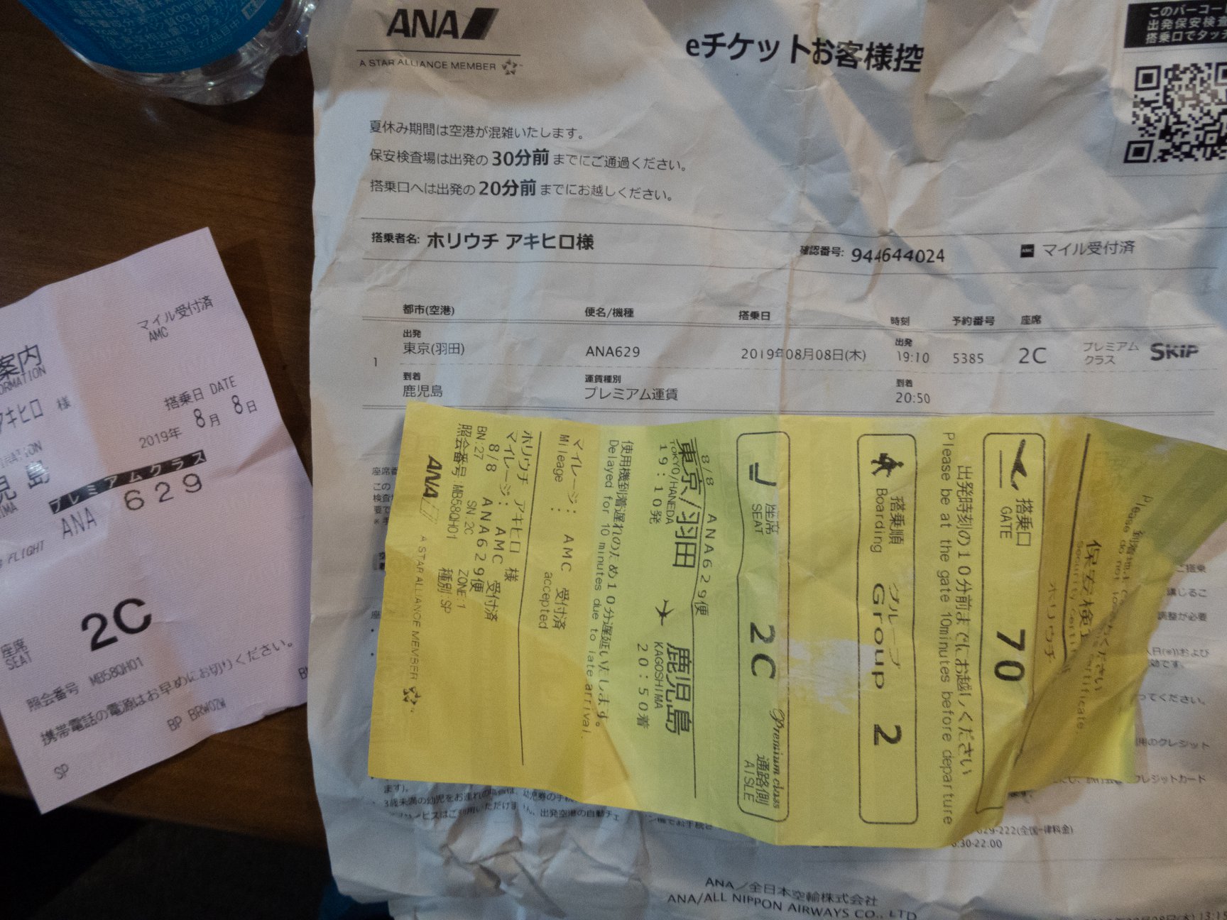 羽田19:10 – 鹿児島 20:50(20分ほど遅延) 座席2C
