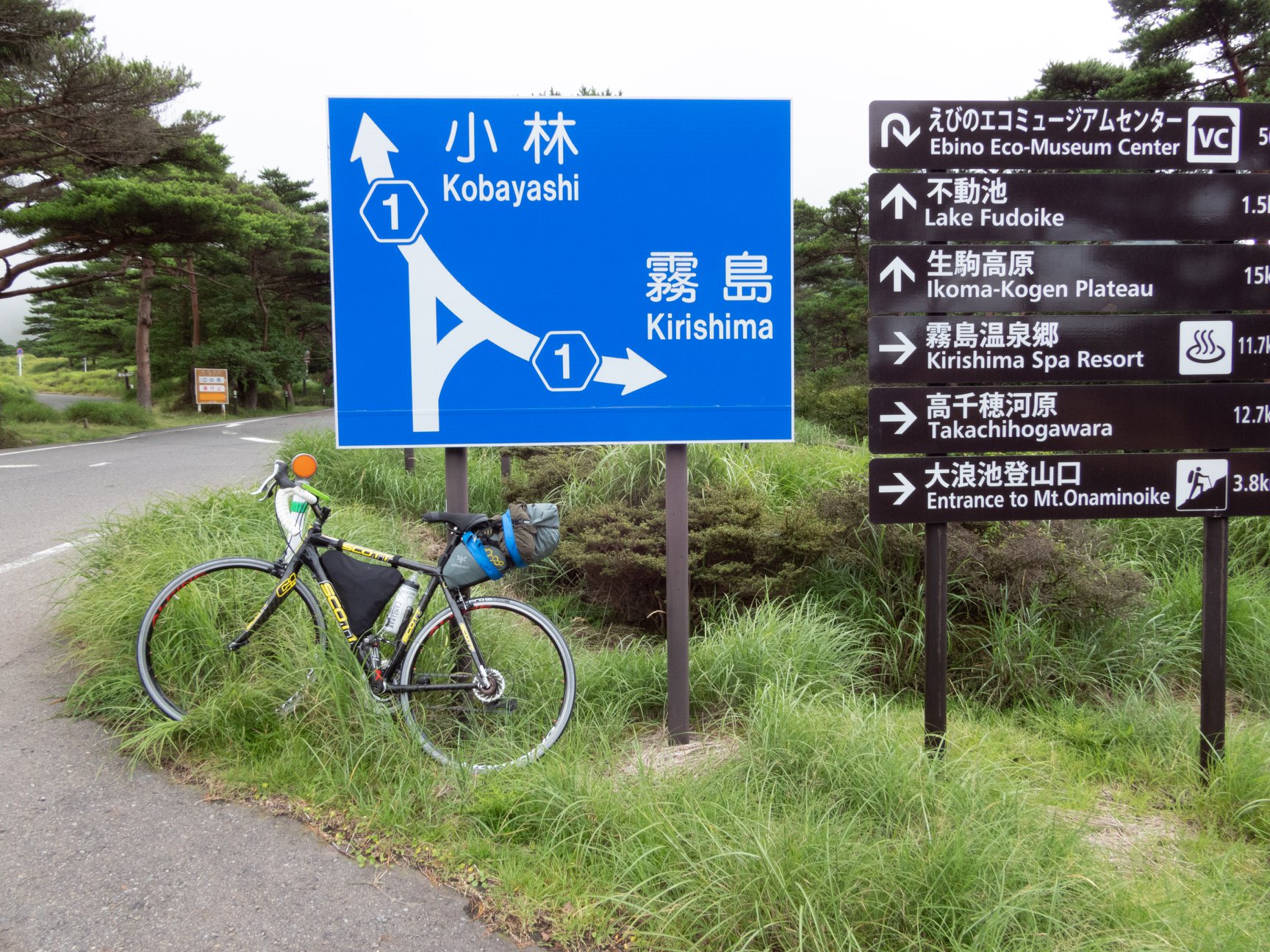 霧島神宮駅まで走って、駅前でタクシーを拾って、えびの高原までタクシー輪行。途中、霧島神宮にお参りさせていただいた。