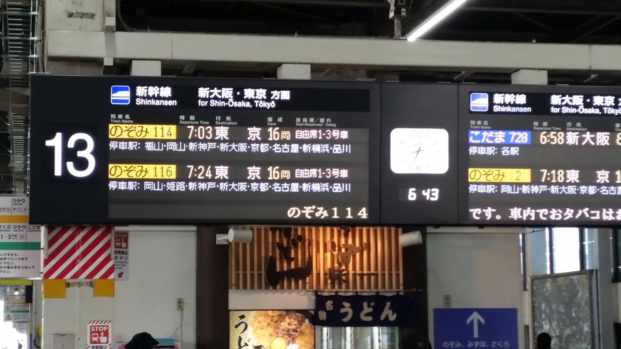 新山口駅06:37 – 広島07:26 6-18-A ひかり440