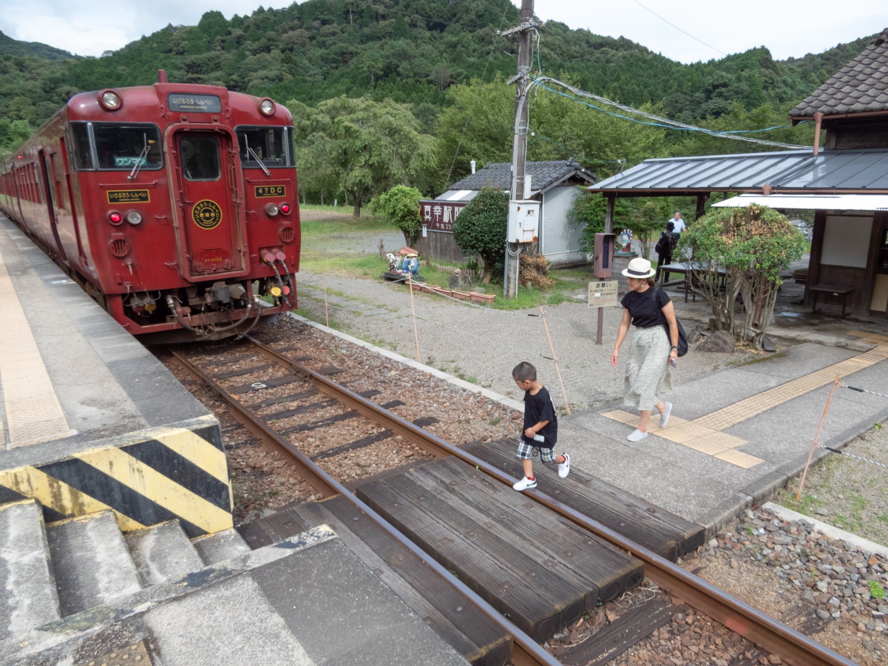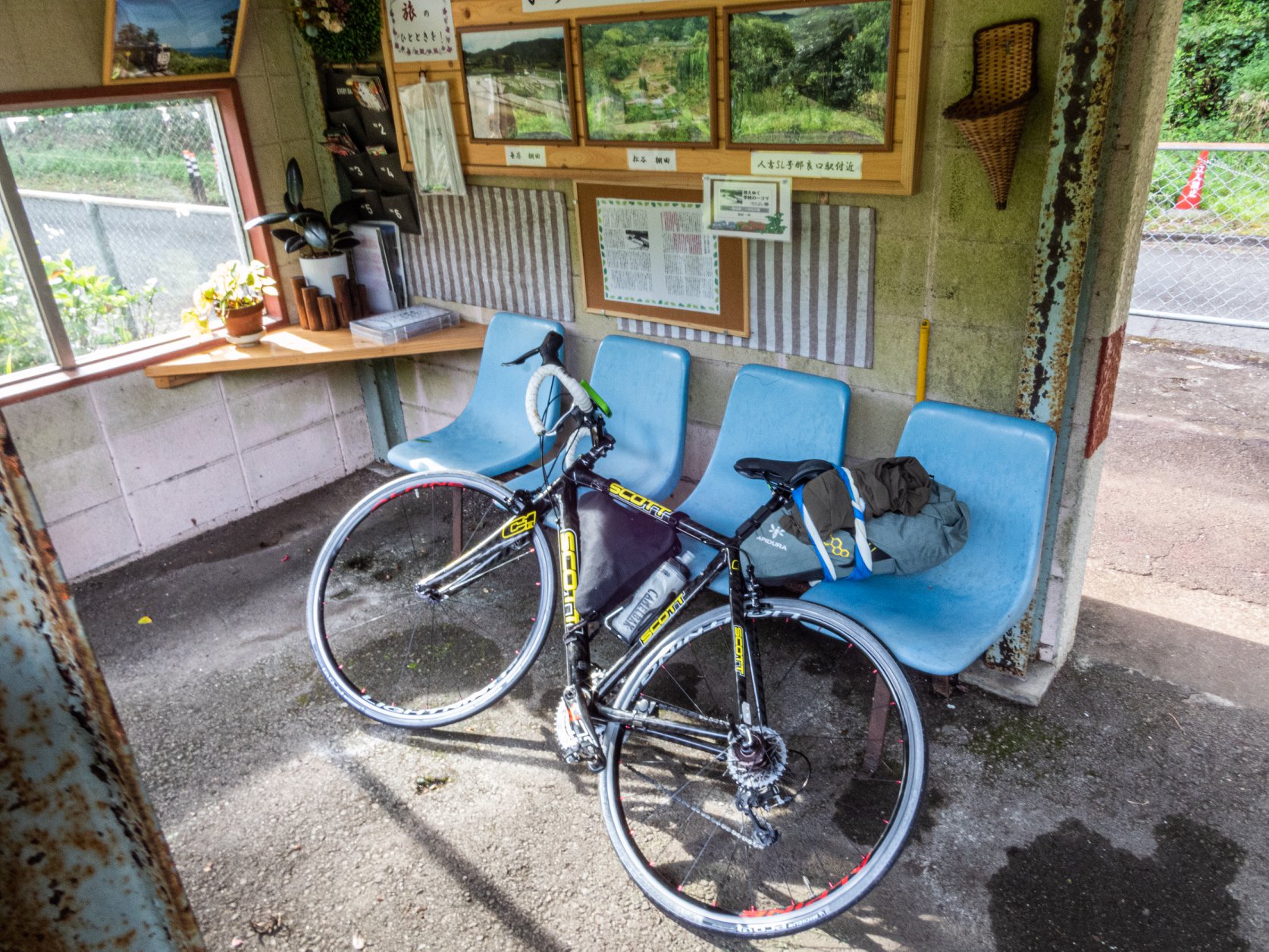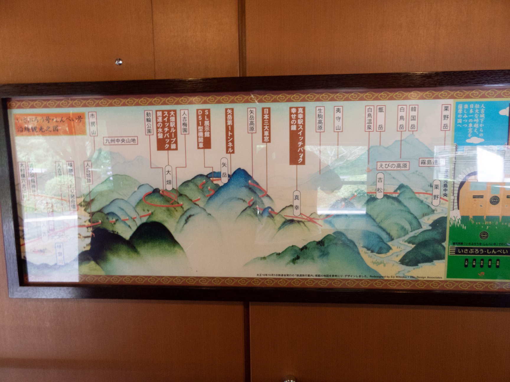 観光列車なので、各駅で観光時間があり、なかなか進まない。途中の矢岳駅で降りて、県道を自転車で下るべきだったと、ちょっと後悔。