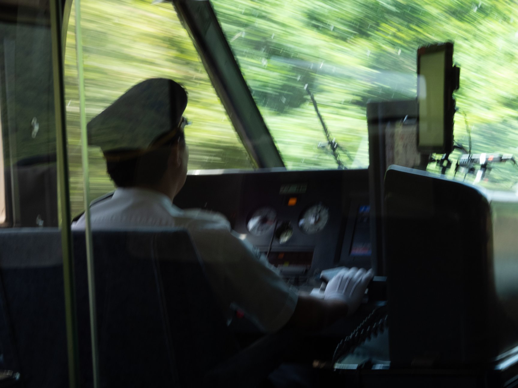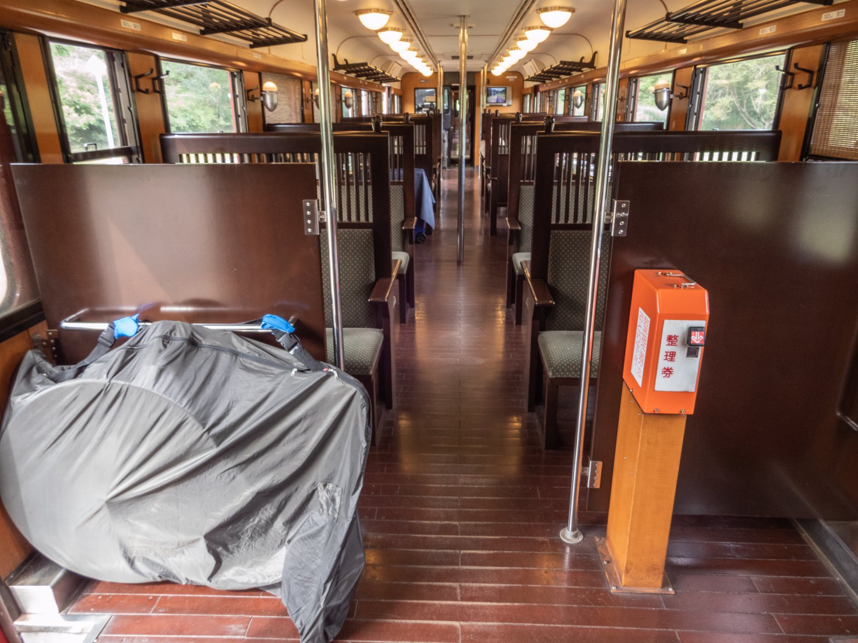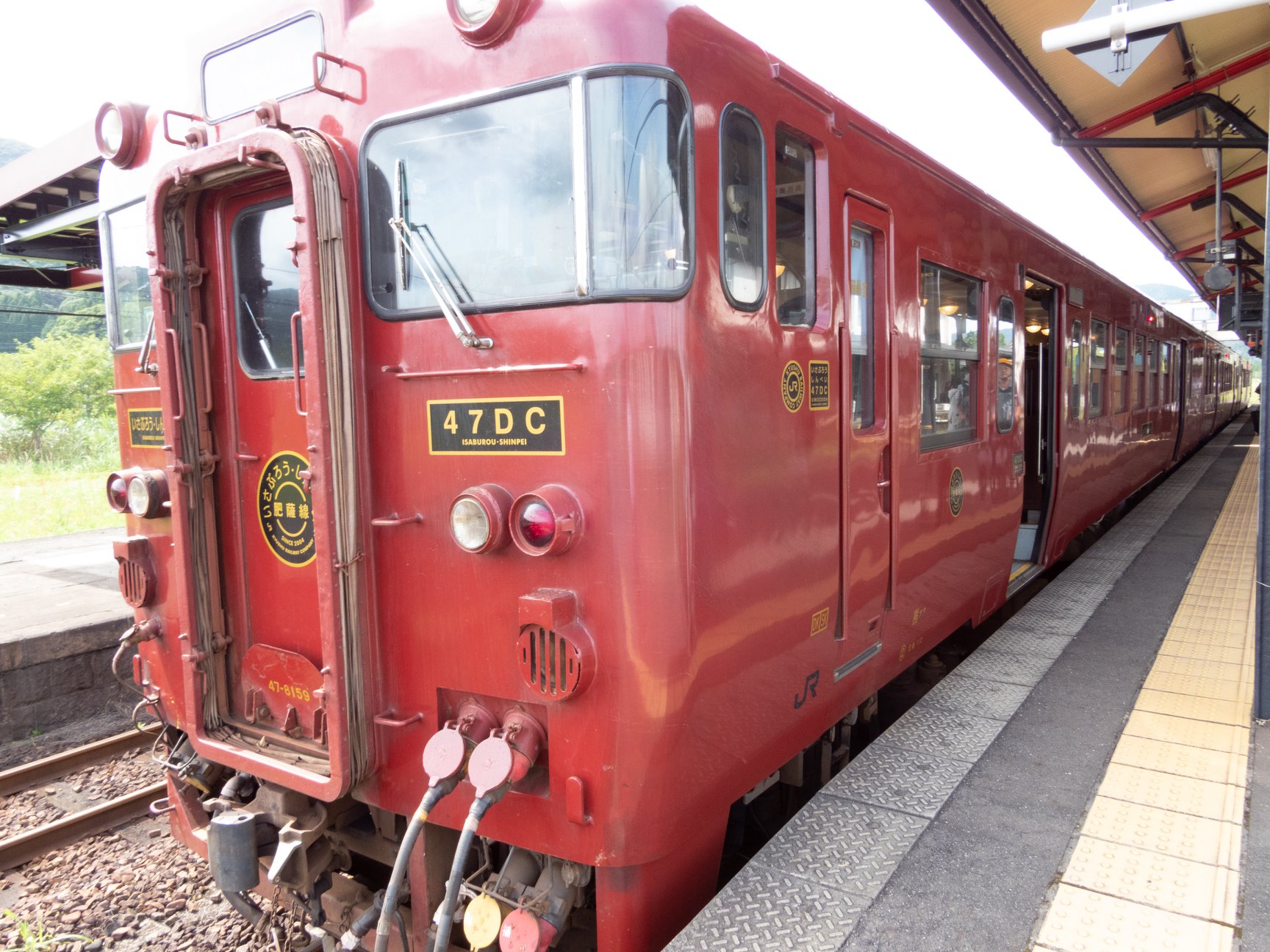 観光列車なので、各駅で観光時間があり、なかなか進まない。途中の矢岳駅で降りて、県道を自転車で下るべきだったと、ちょっと後悔。