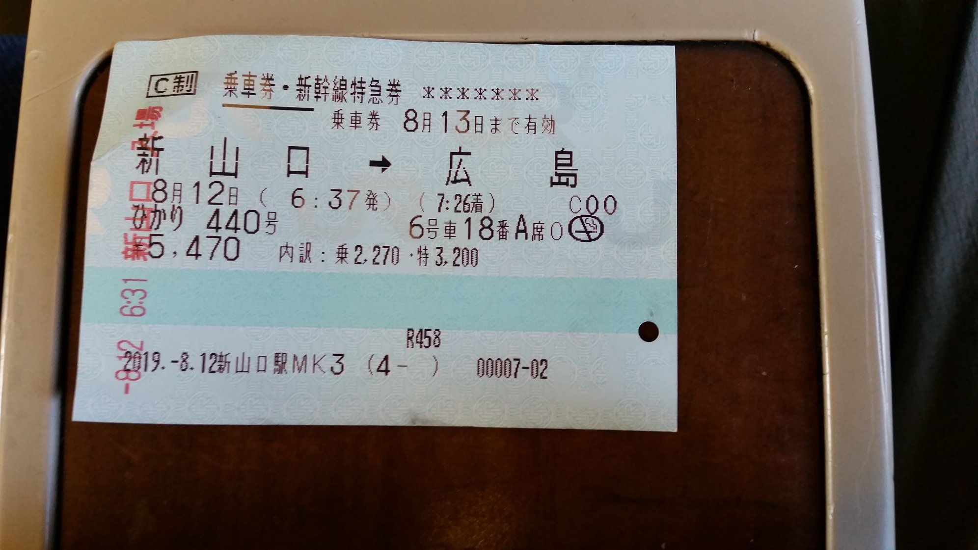 1-1-A、1-1-B(前夜に広島駅の券売機で購入)