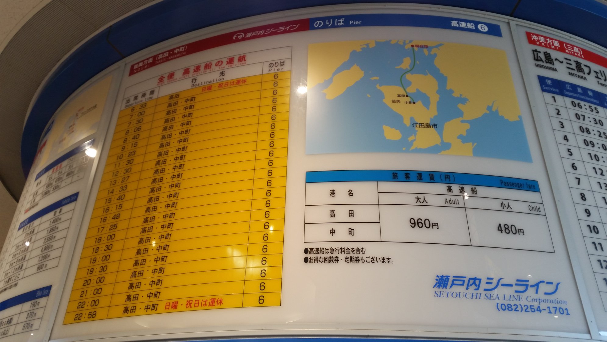 広島駅〜似島〜江田島〜プリンス前〜広島駅