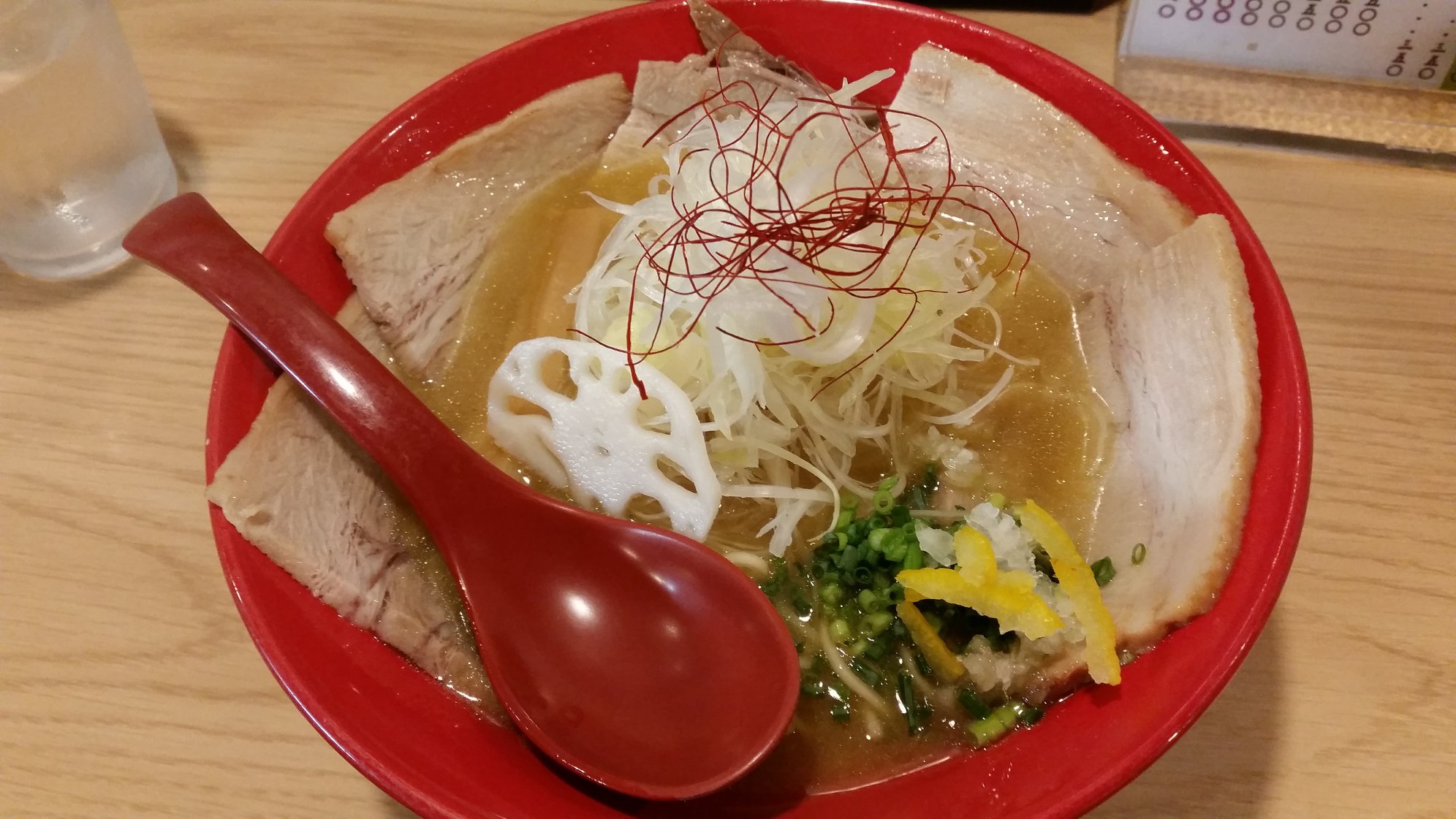 夕食は「しのだ」でふぐ。その後、ホテル近くの鶏一心でラーメン。
