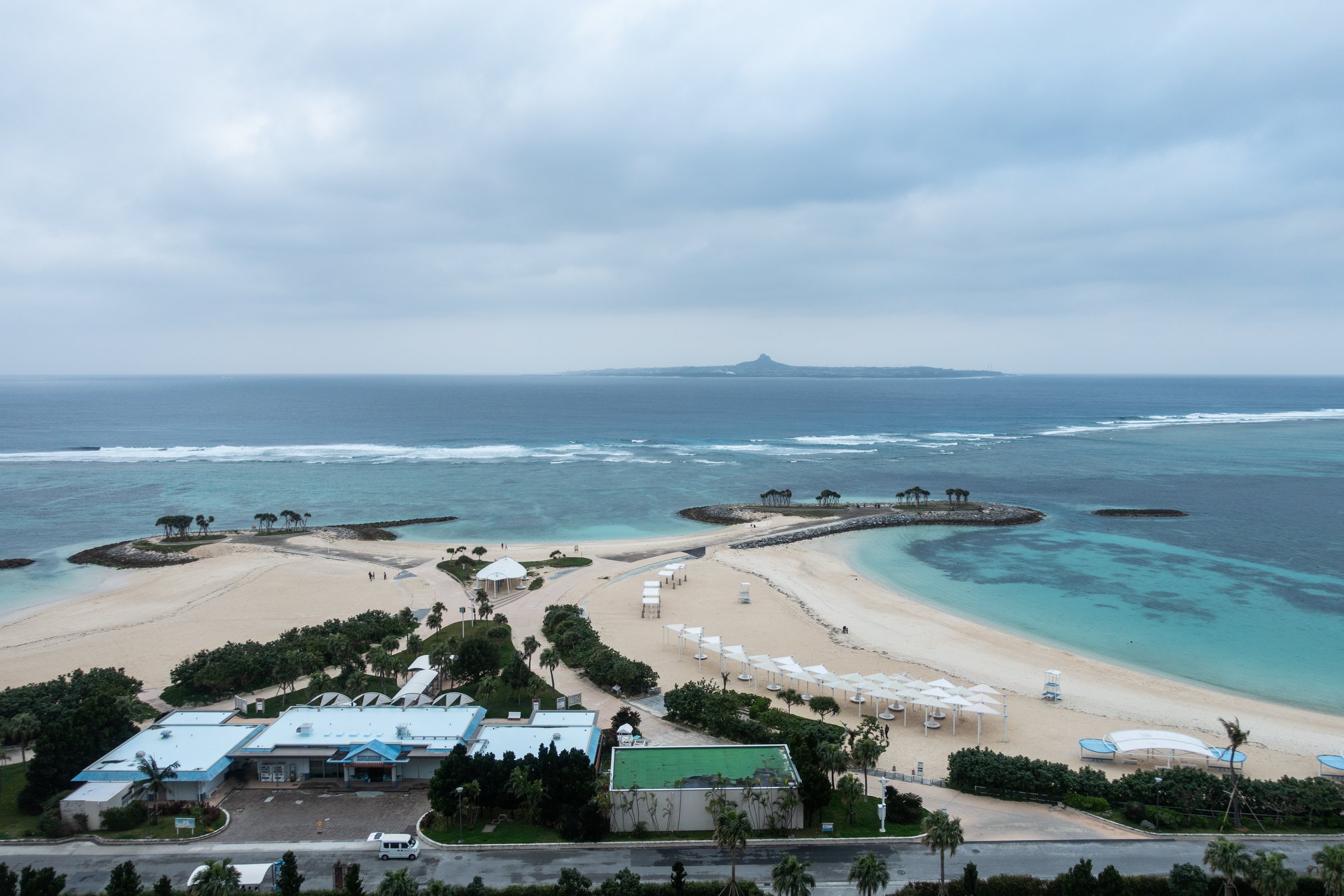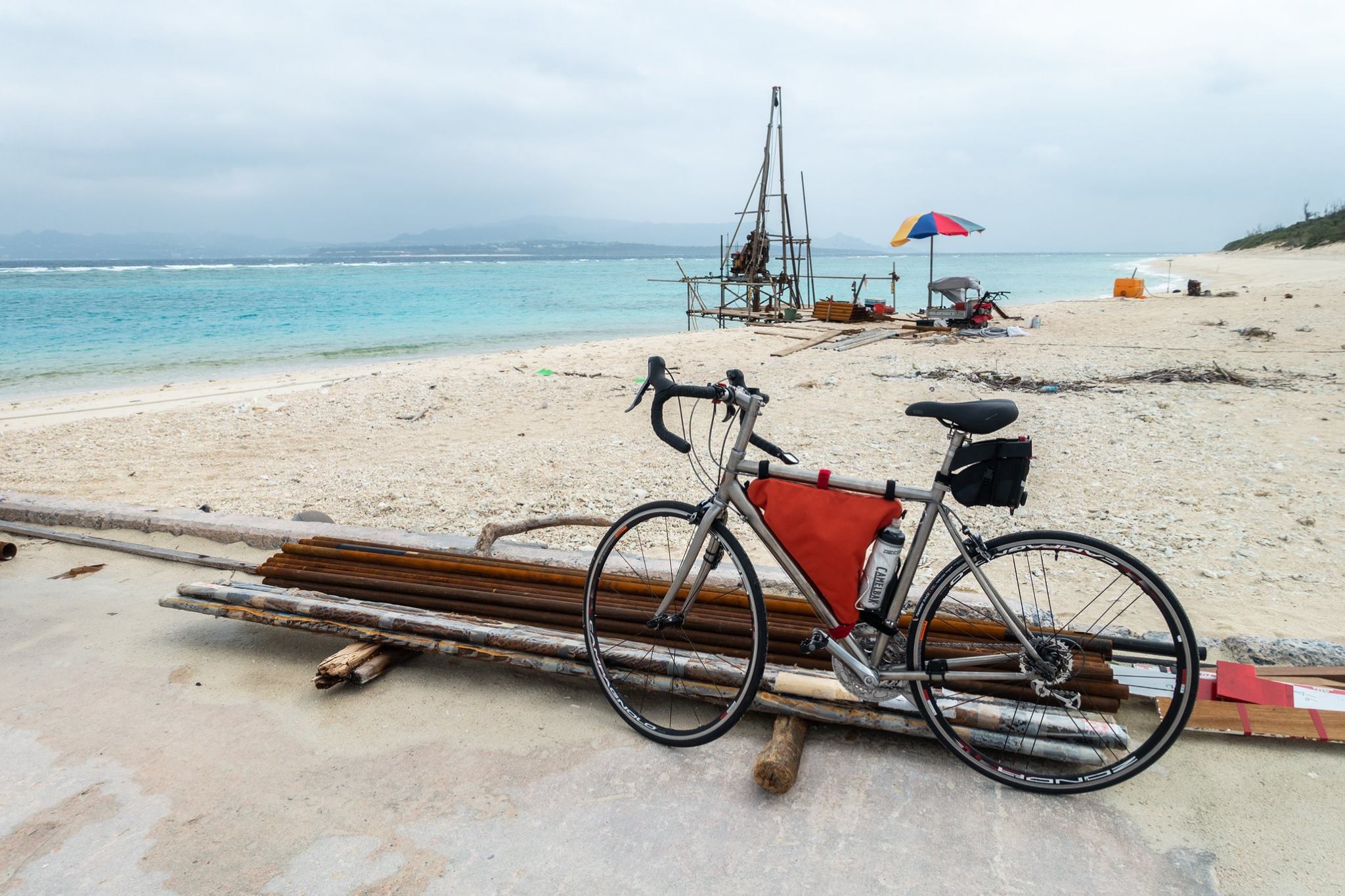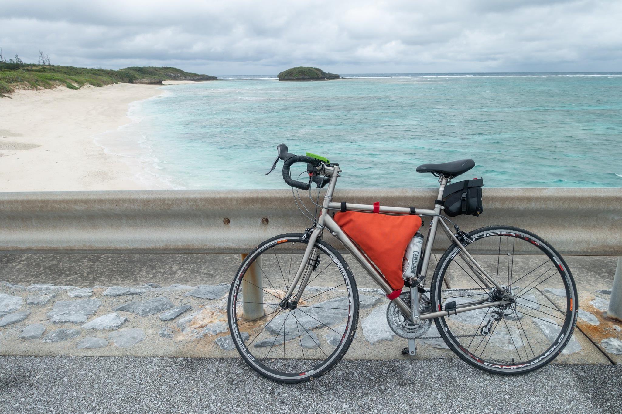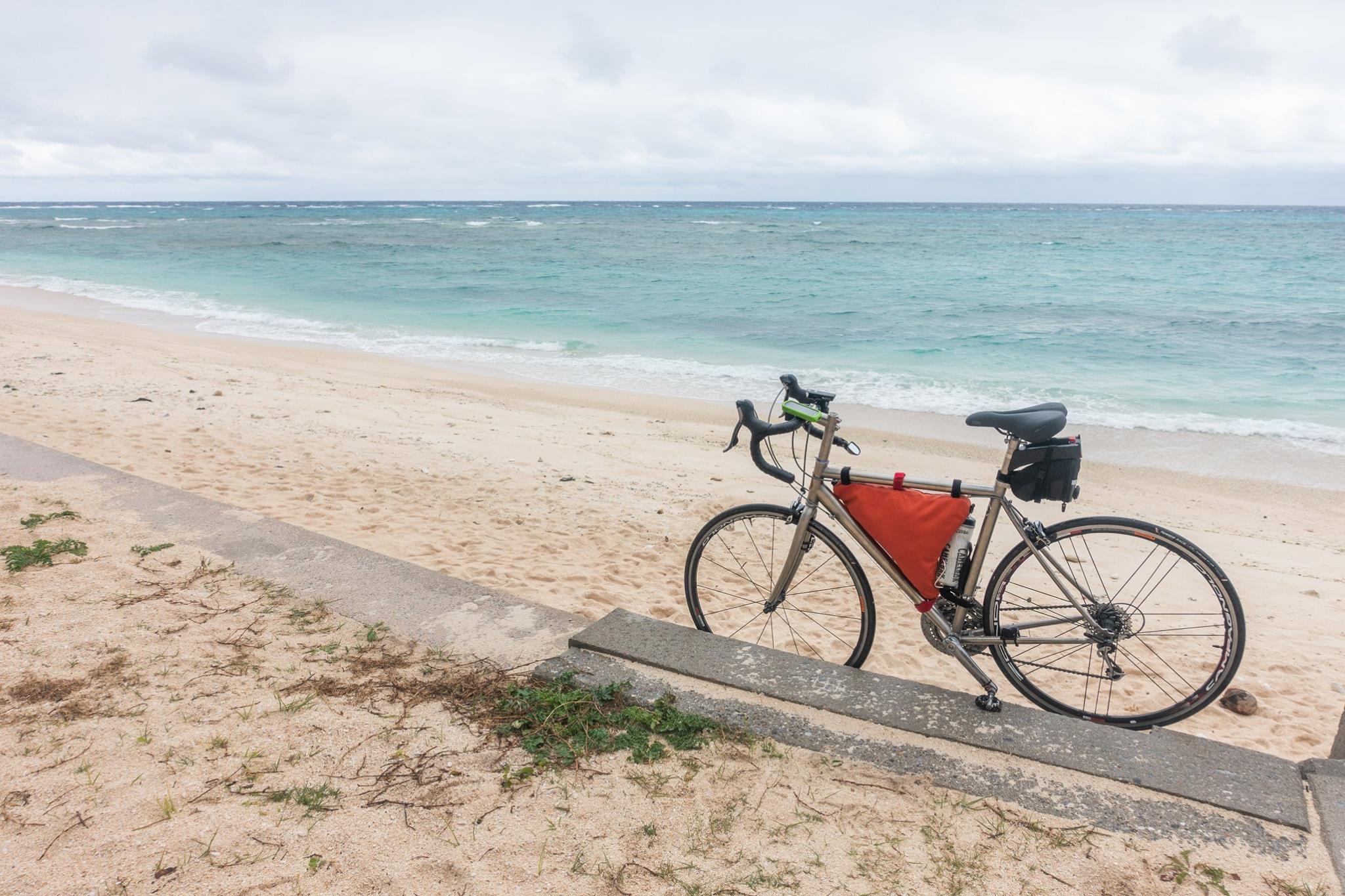 自転車を組み上げ、瀬底島に足付け。