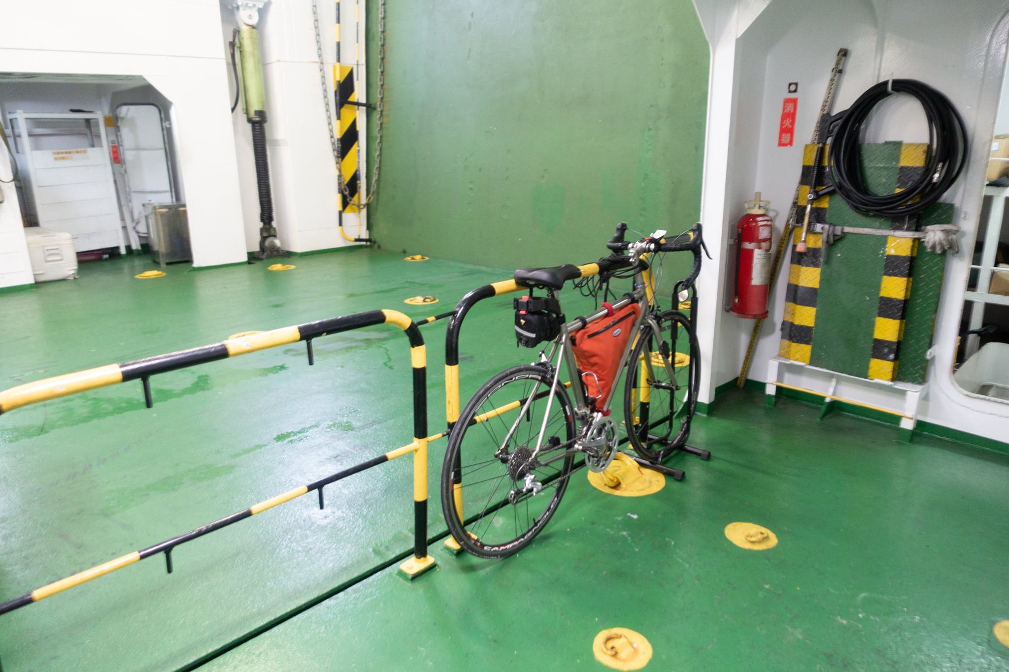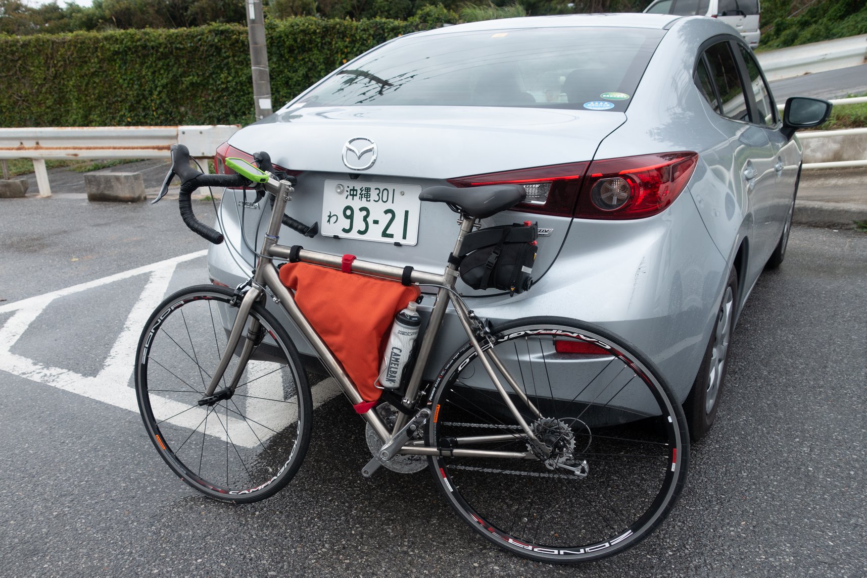ホテルに帰った後、駐車場の4FBの車を3FAまで下ろして、自転車をエレベータで下ろして組み上げ、ホテルフロントに預ける。