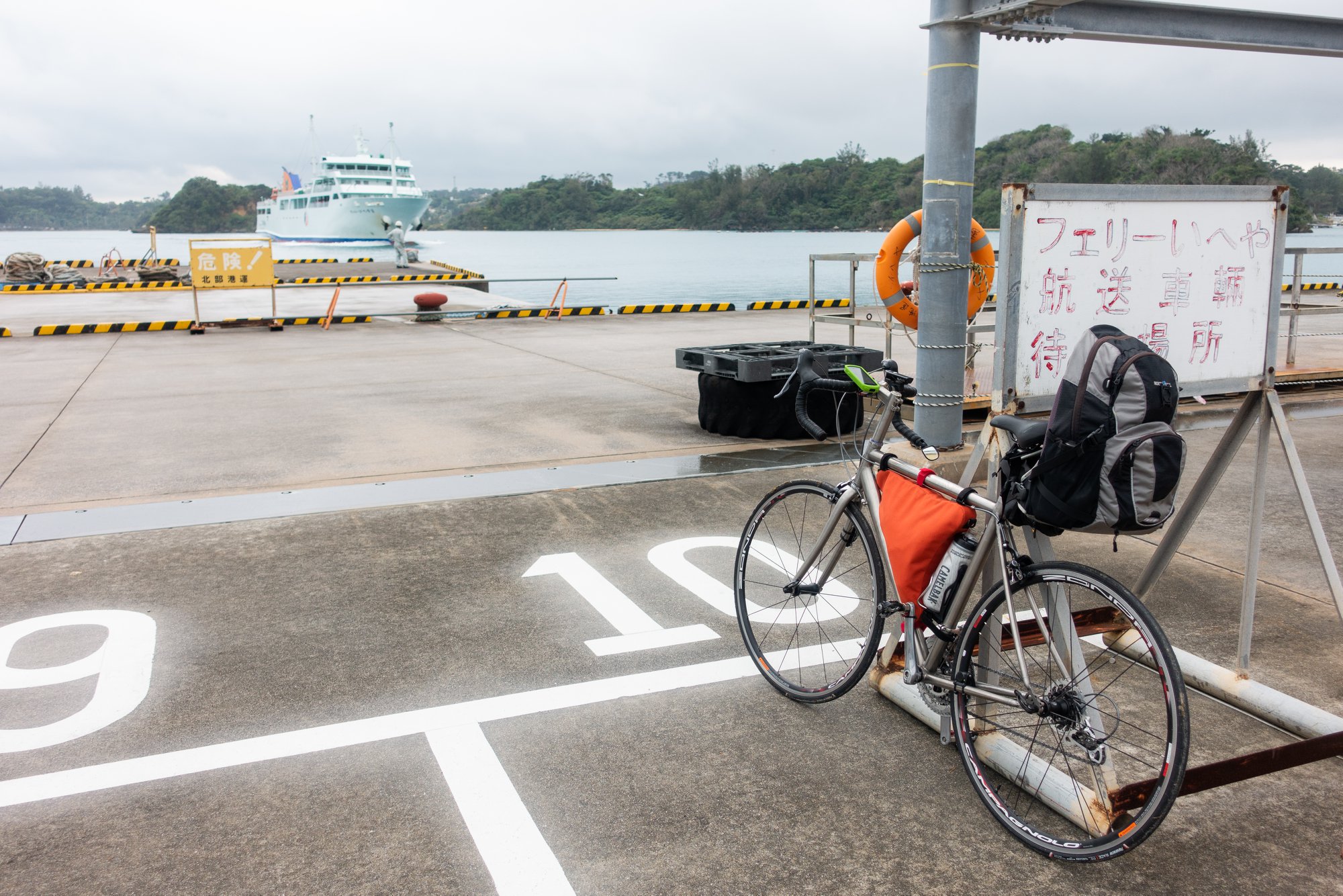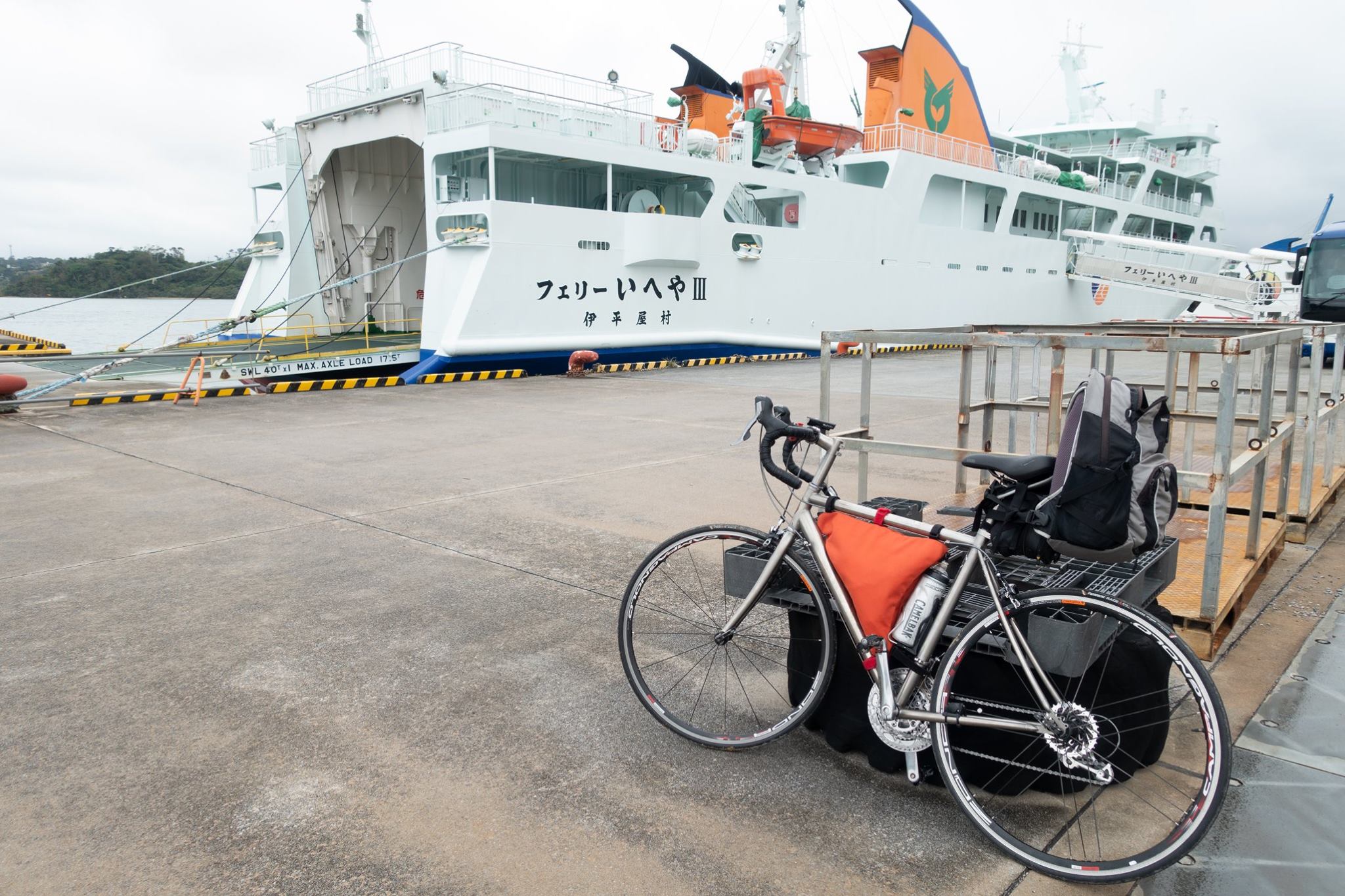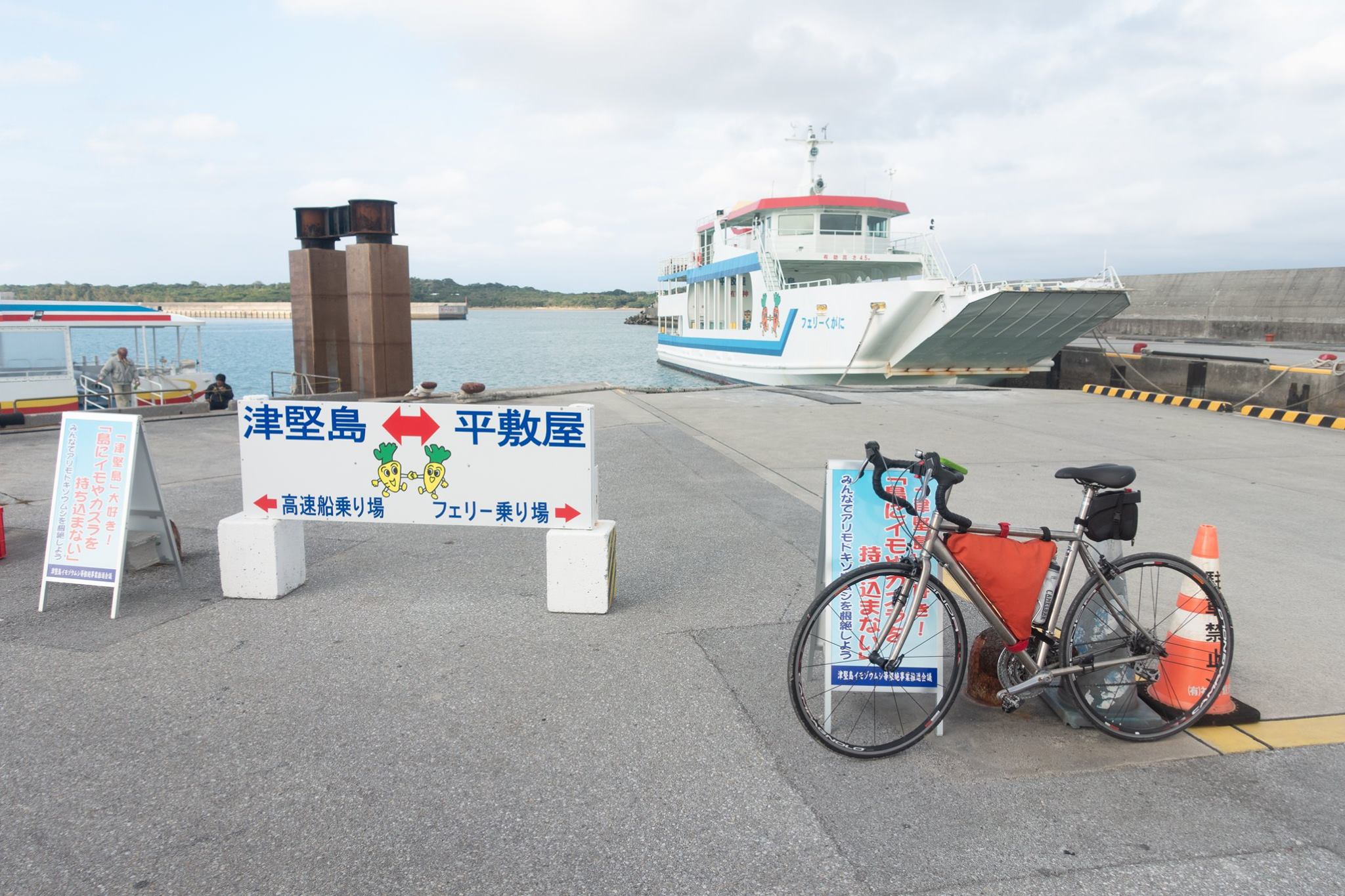 とまりんの粟国行きフェリー発券所で往復のチケットを買う。ここで08:30出港と嘘を教えられた。自転車で乗り込むためには、フェリー乗船所まで移動してから、荷物券を買わなければならない。