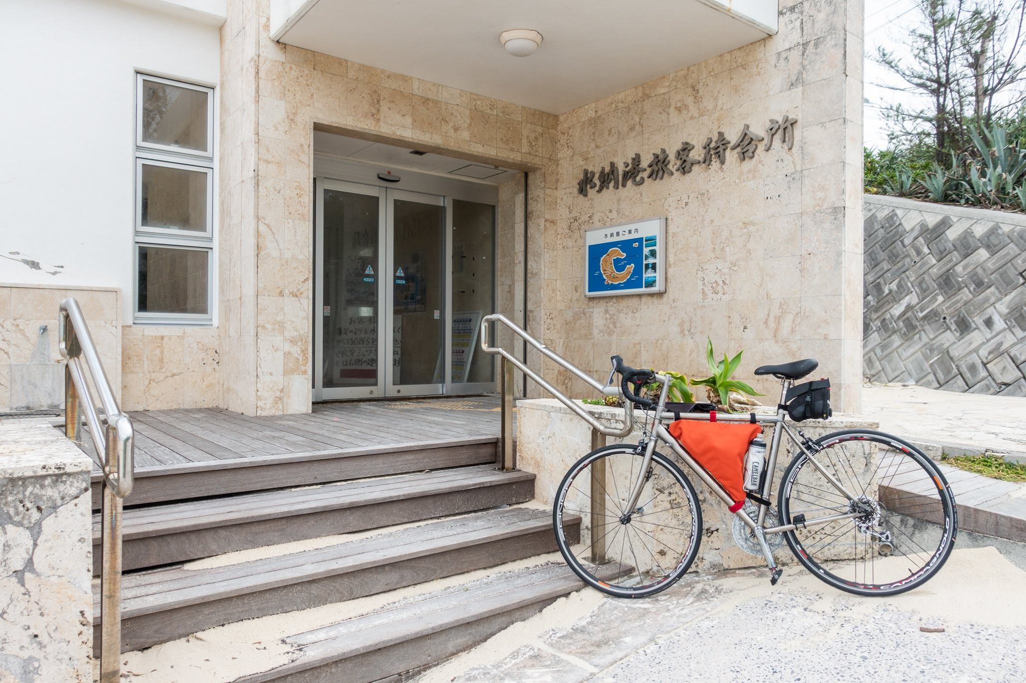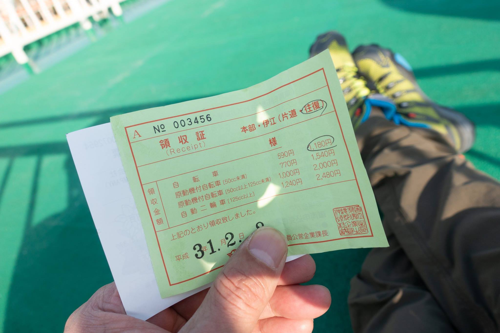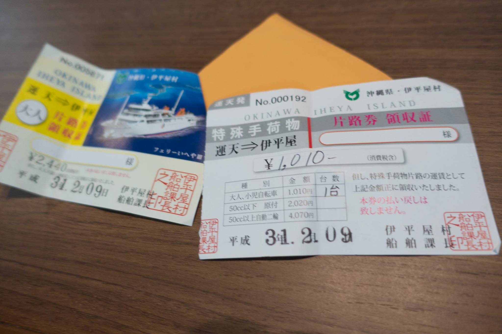 とまりんの粟国行きフェリー発券所で往復のチケットを買う。ここで08:30出港と嘘を教えられた。自転車で乗り込むためには、フェリー乗船所まで移動してから、荷物券を買わなければならない。