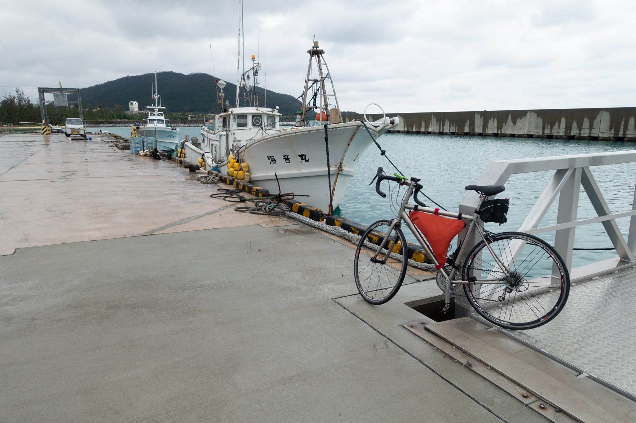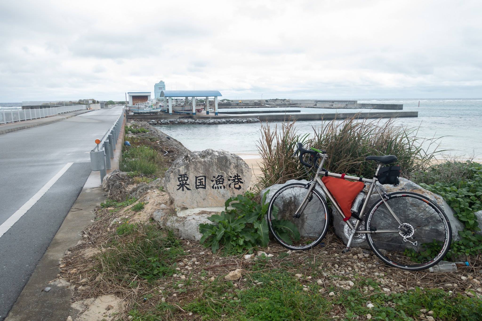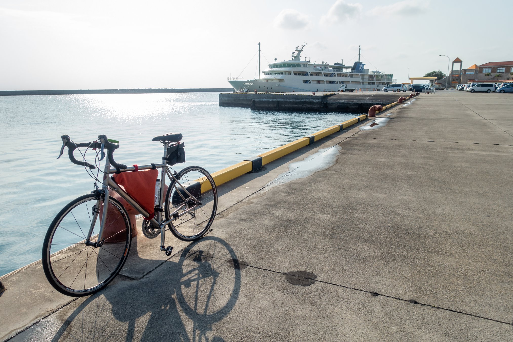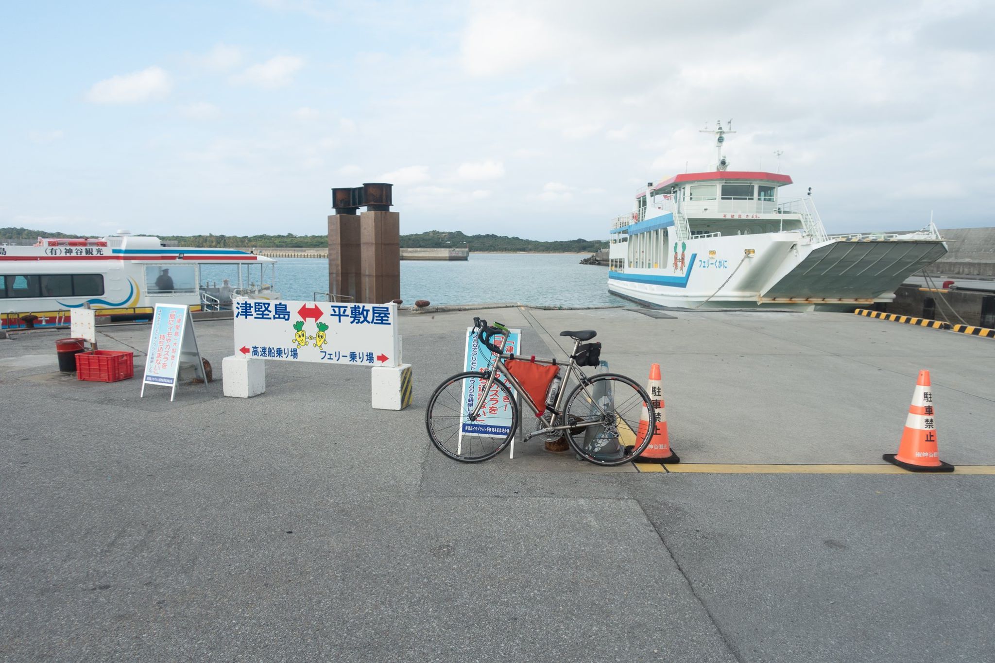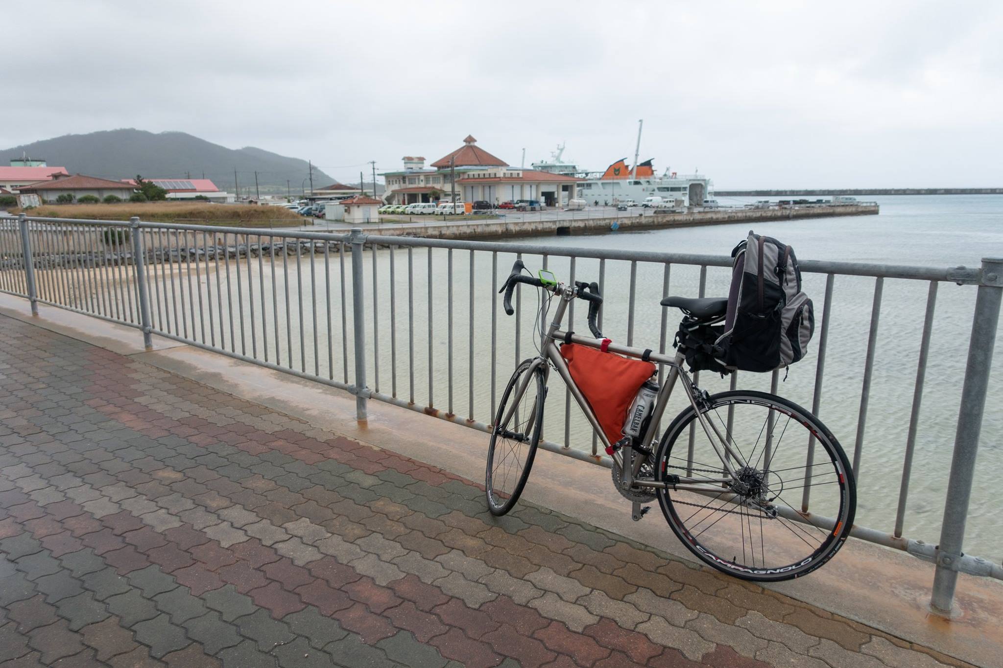港で自転車を組んで、津堅島を往復。