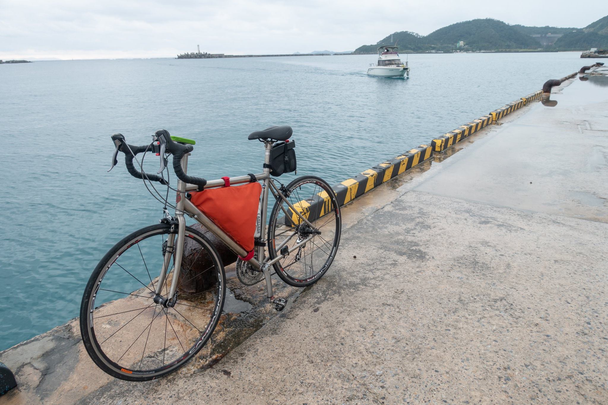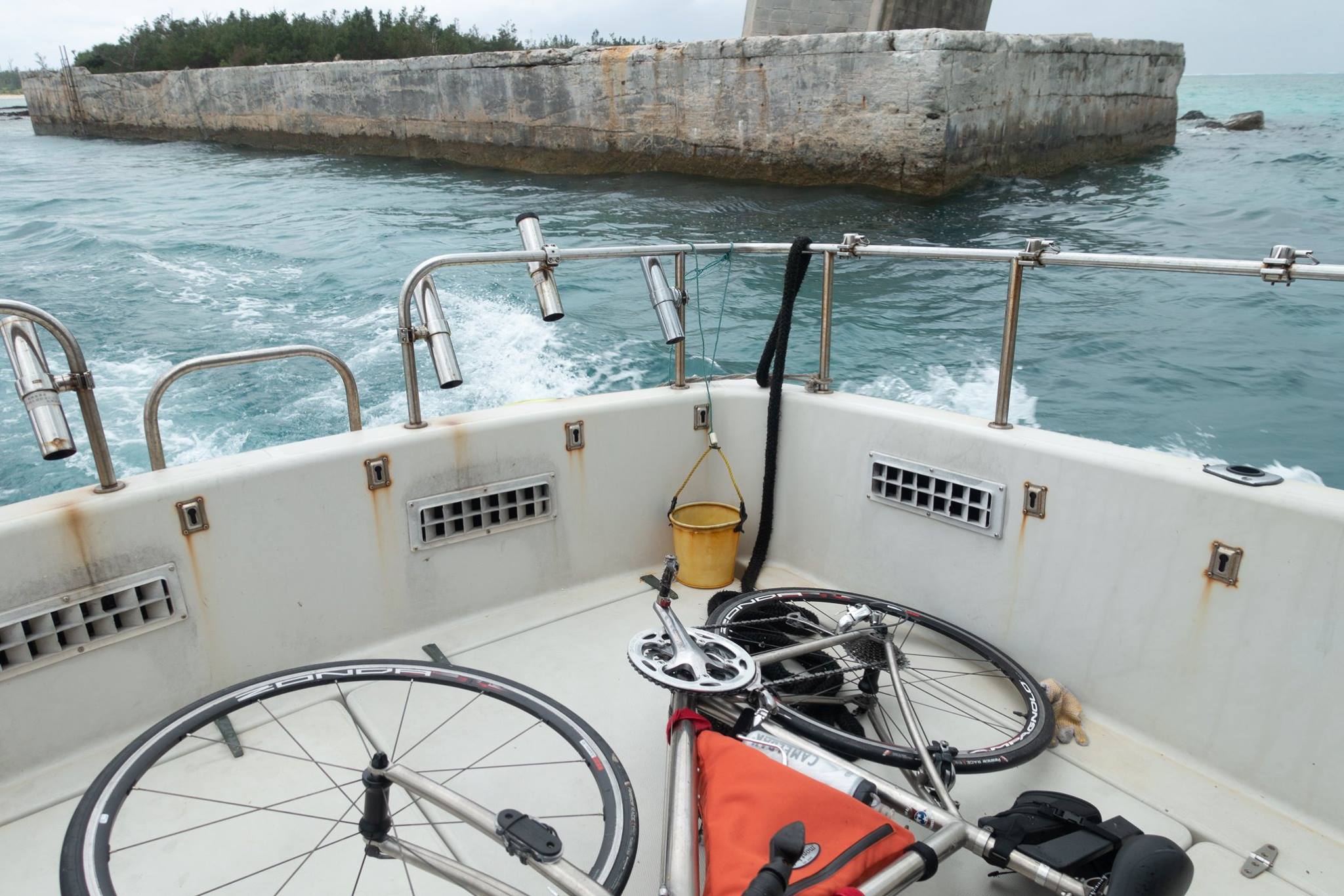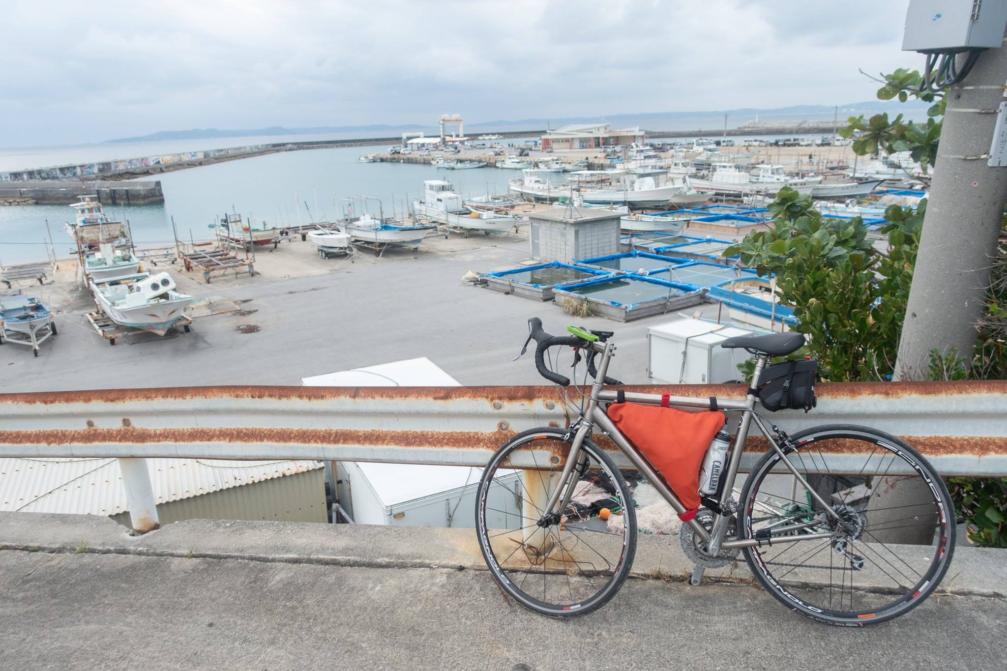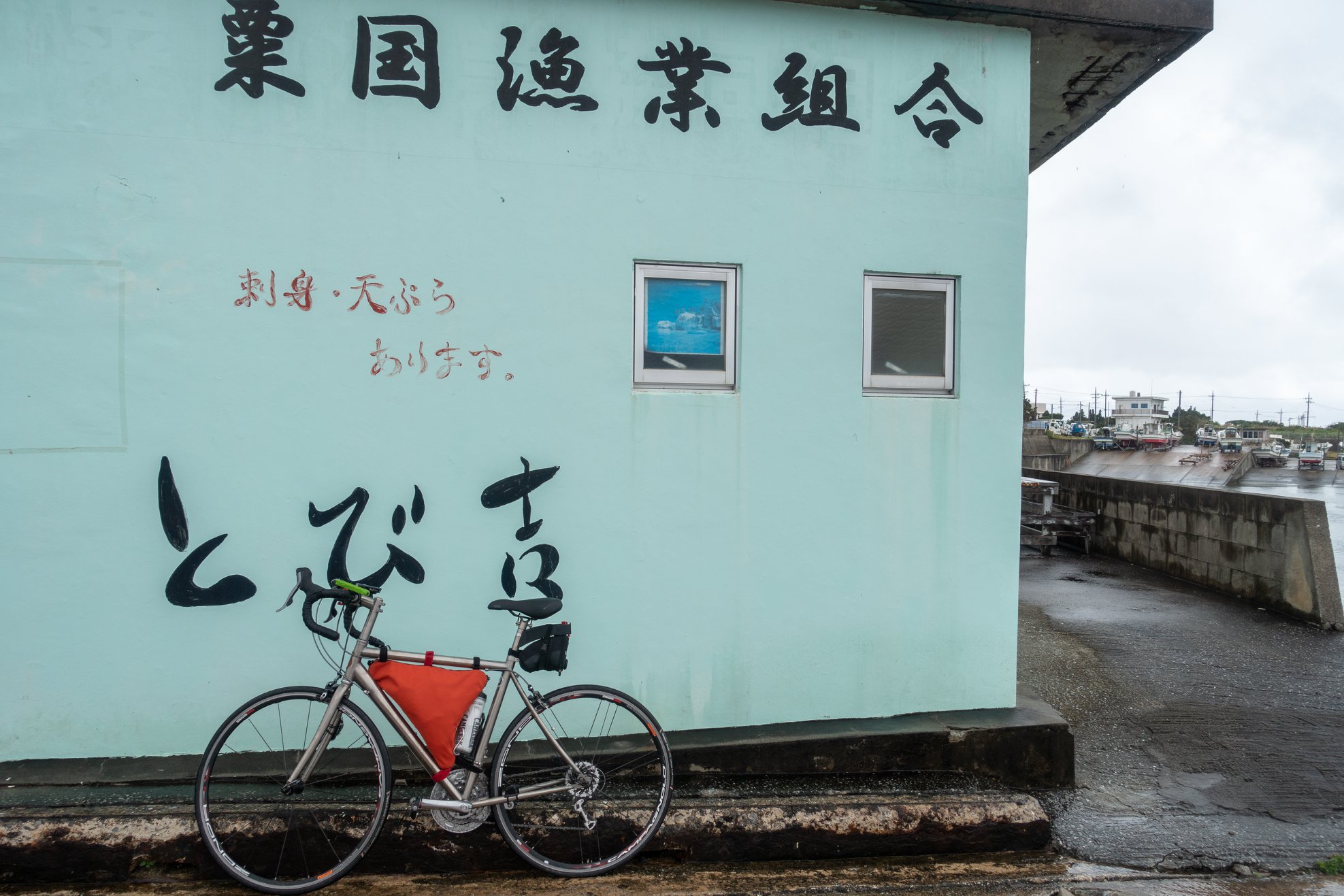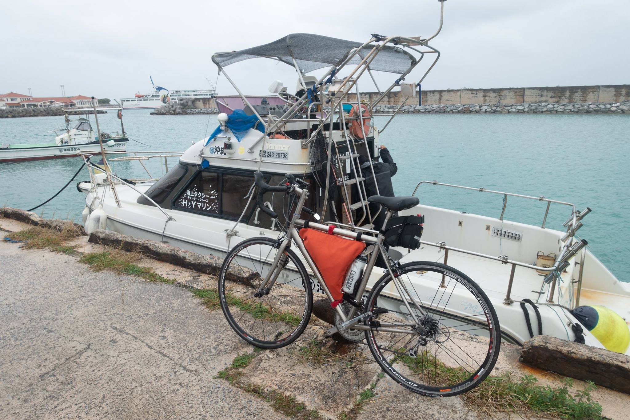 港で自転車を組んで、津堅島を往復。