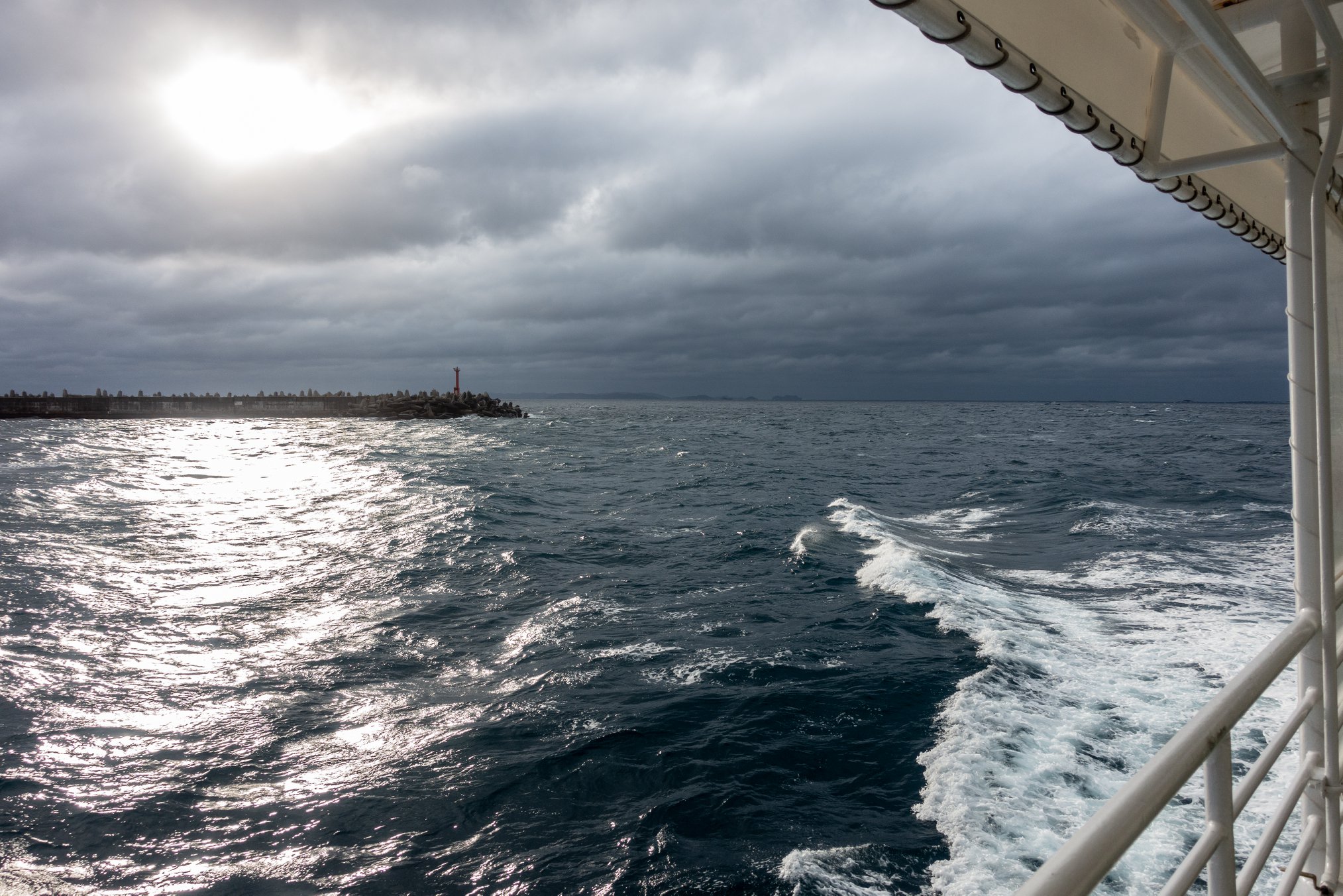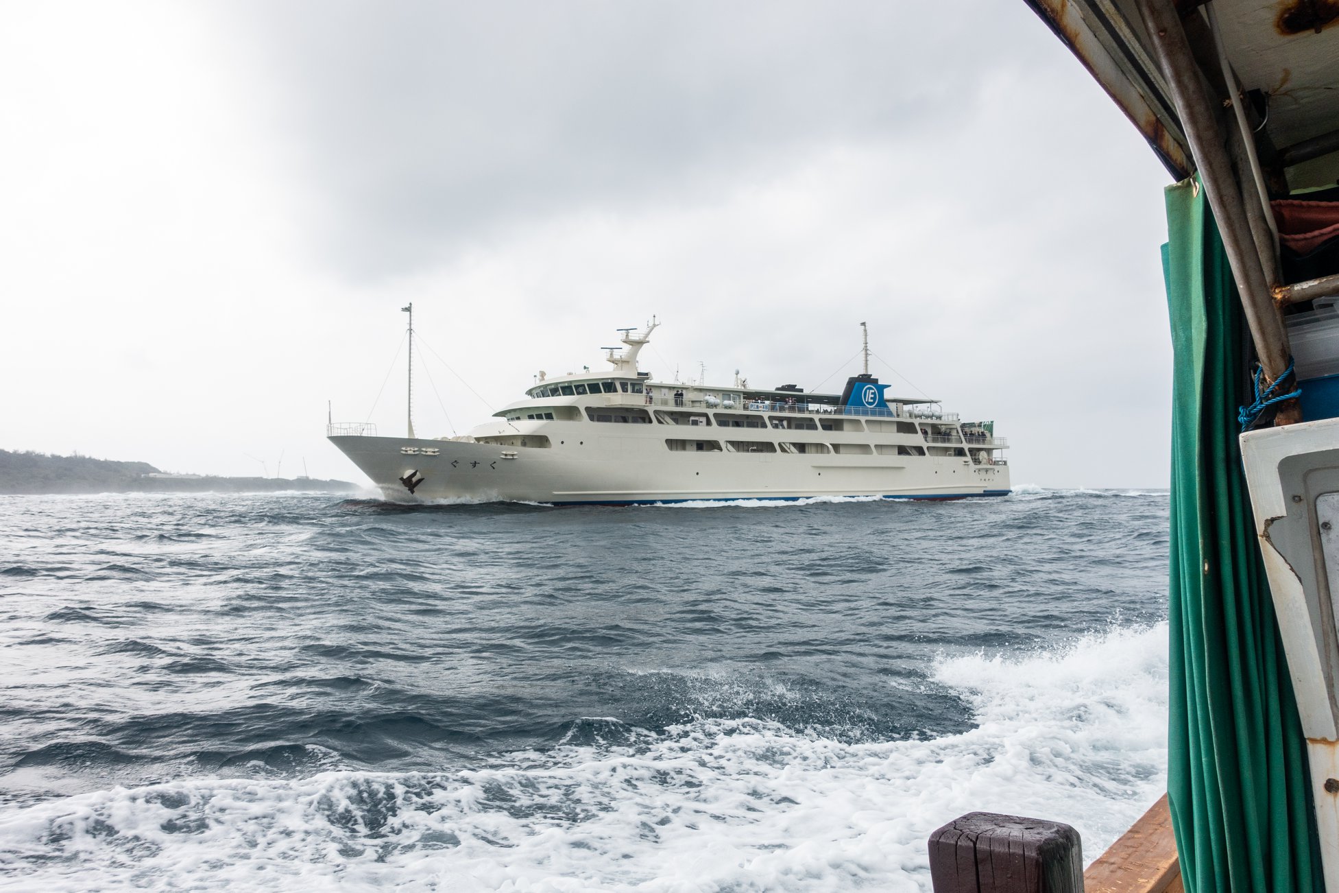 粟国行きのフェリーは、車が少なかったせいもあり、かなりピッチングした。