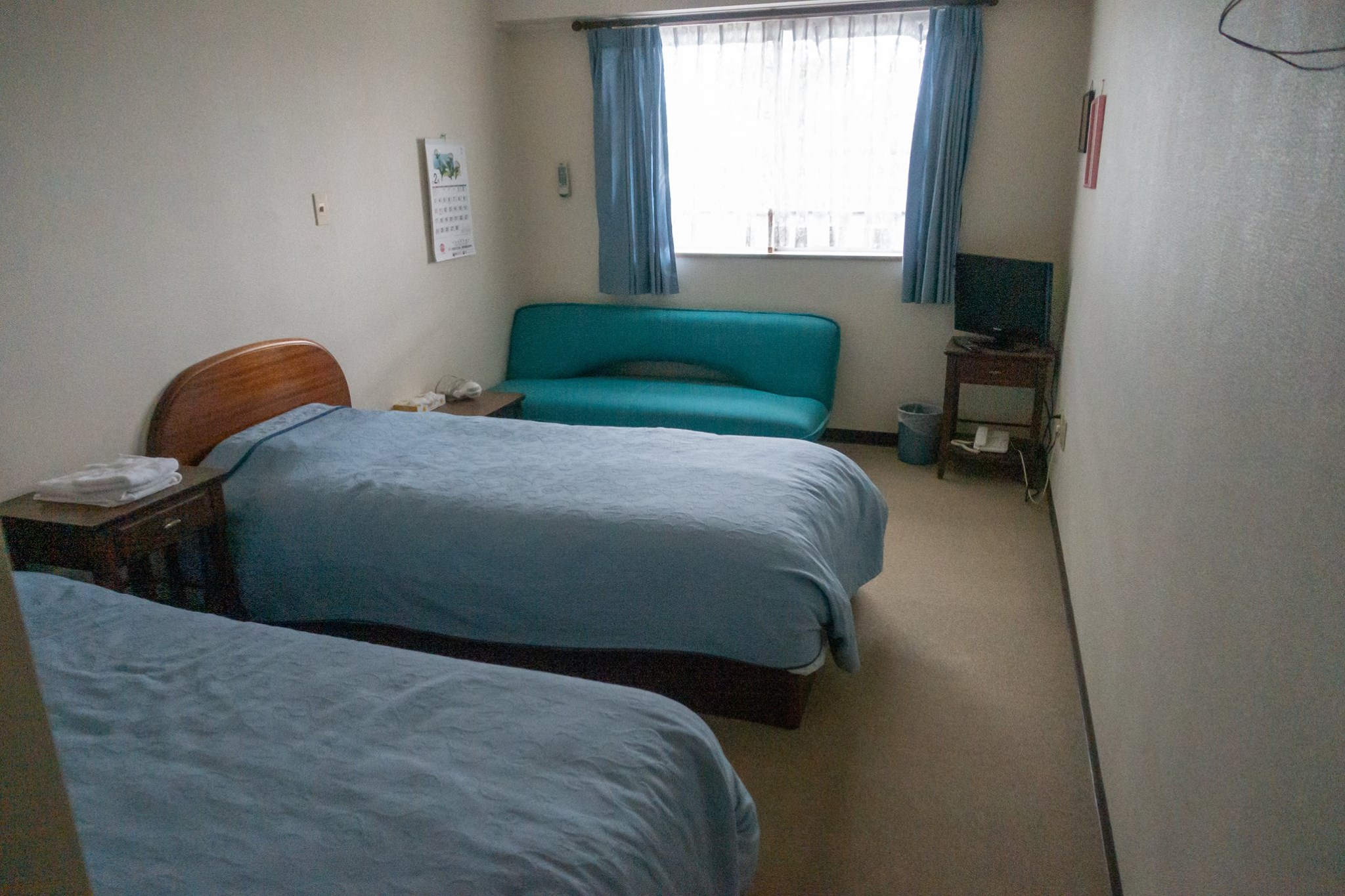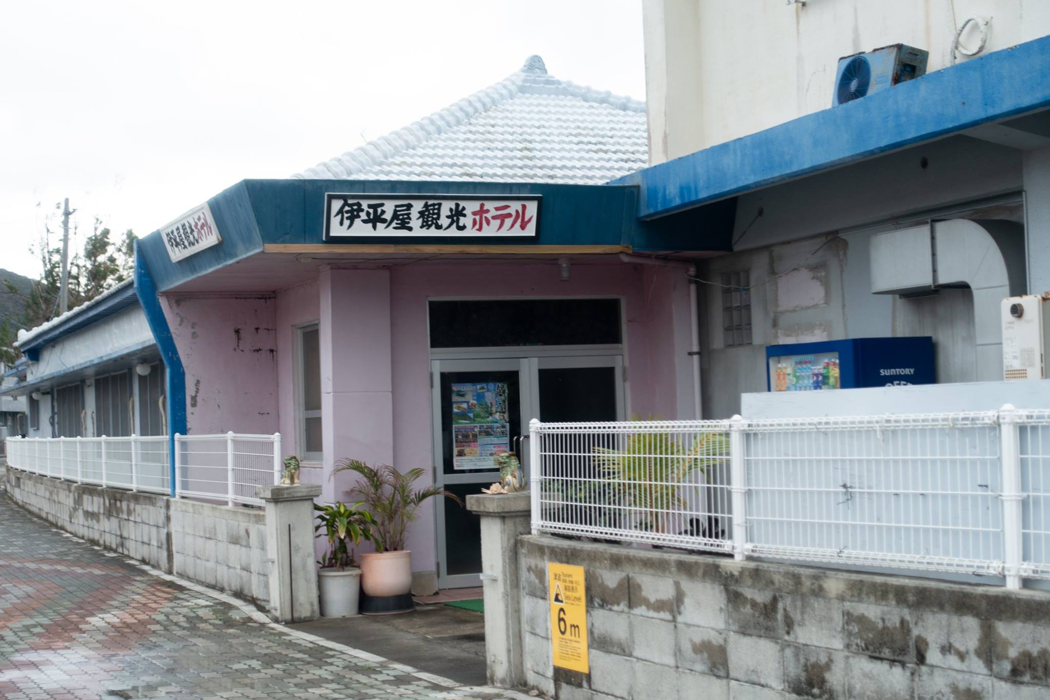 松金ホテルは留守番のばーちゃんが受付していた。旅行前の電話予約の時点で、「素泊まり限定」と言われていたし、島民の多くが那覇での民謡大会へ出かけているので、他の店も空いている分からなかった。非常食として、夕食用の塩カルビ弁当と朝食用のサンドイッチを今帰仁村のローソンで買い込んできた。その前日に本部で買ったおにぎりは車の中に忘れてきた。