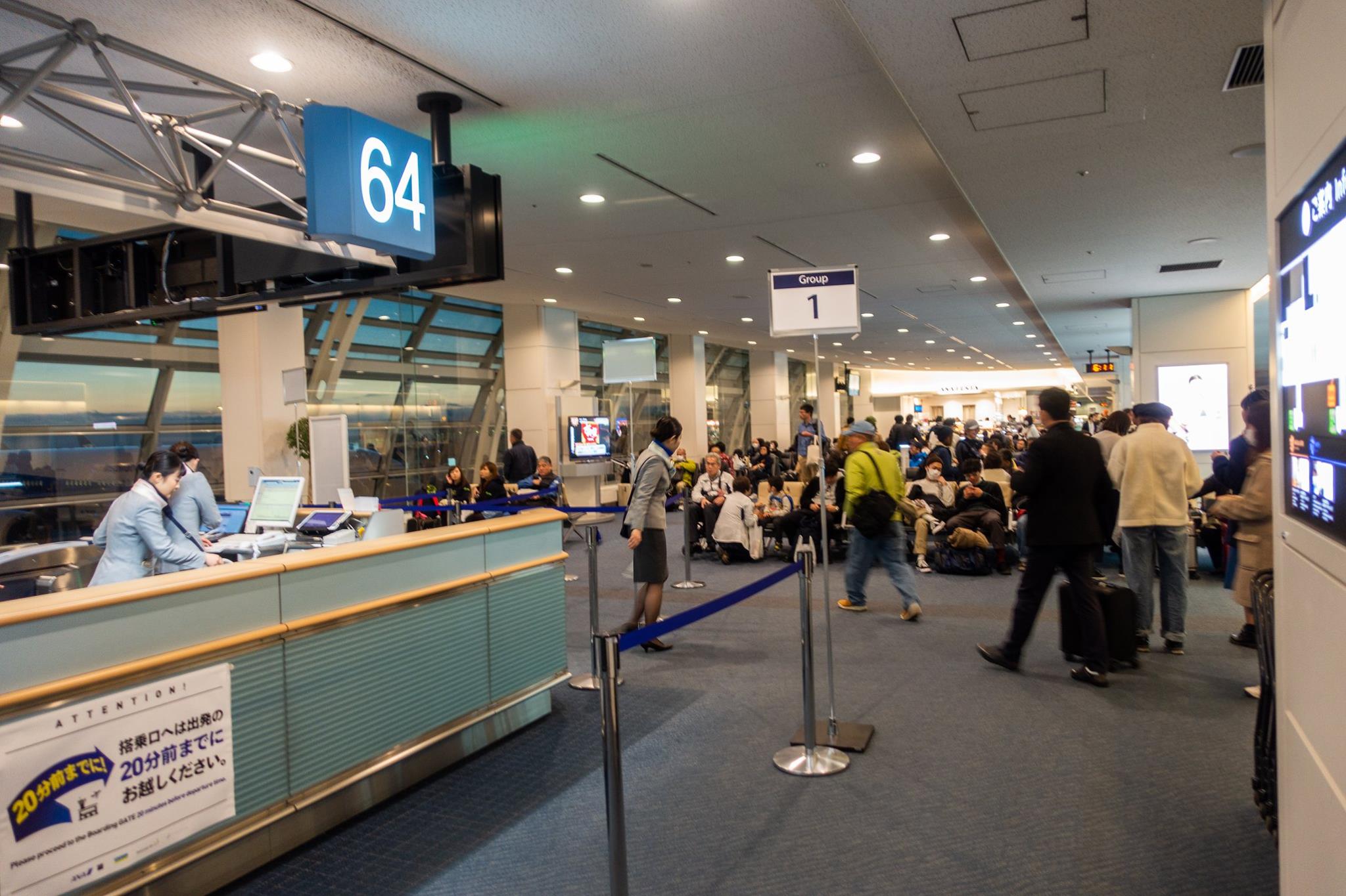 19:30前に空港到着。JALのチェックインは結構混雑していた。