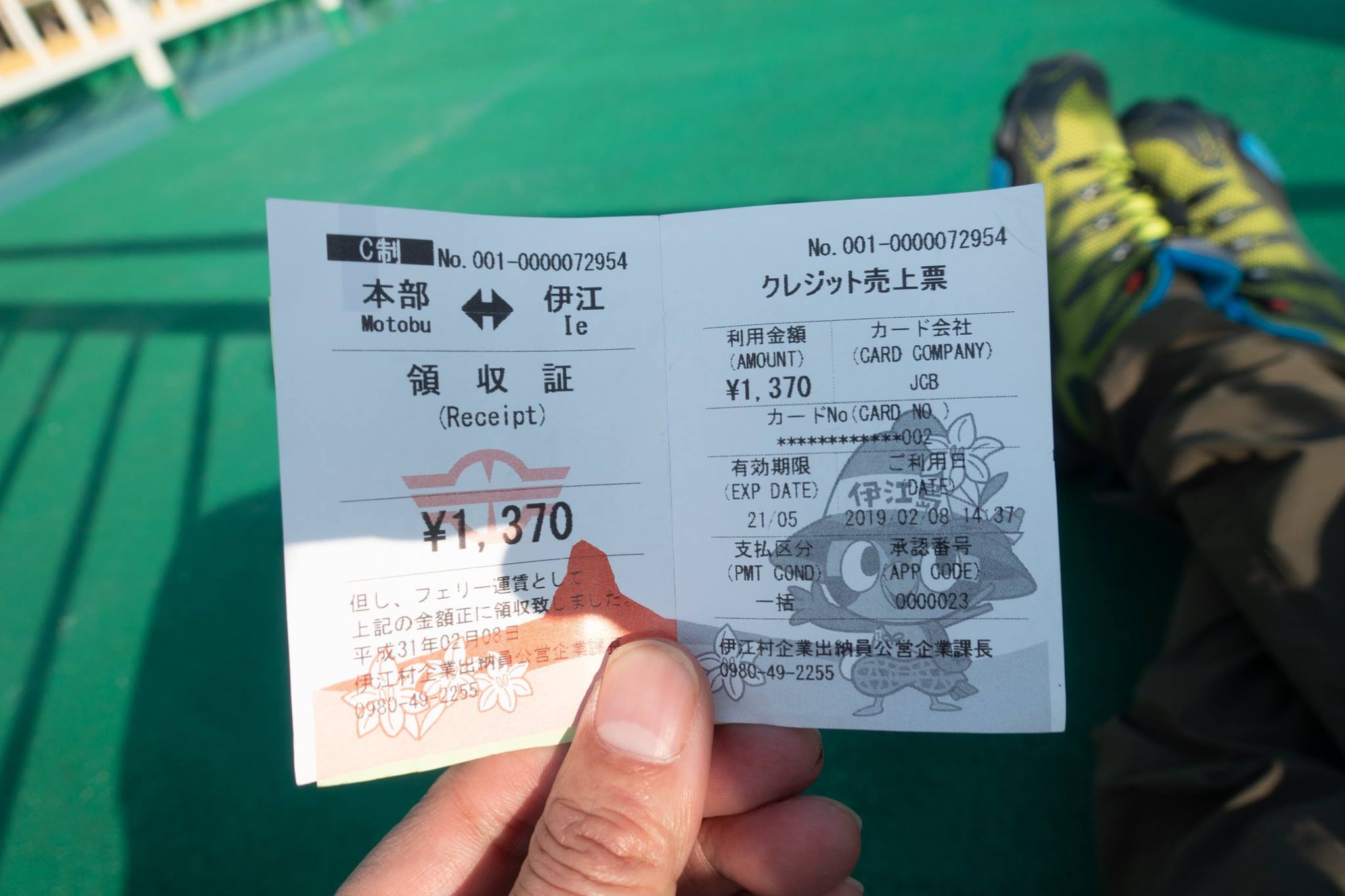 *あらかじめ、伊是名を出るときにフェリー船上で電話して、往復可能なことを確認しておいた。