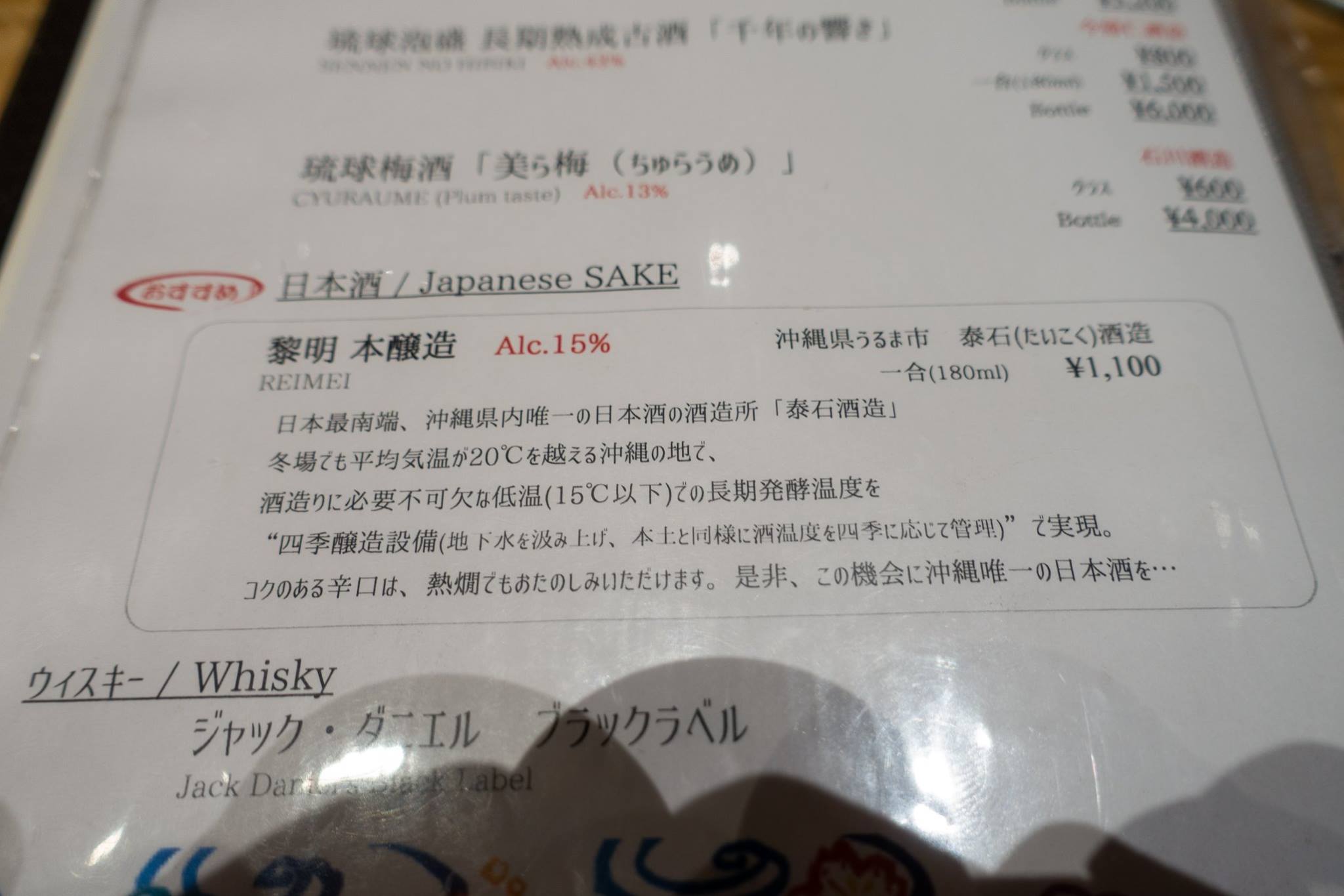 ホテル前でタクシーを拾って、ヒロシの待つ平和通りの“うちなー家琉球居酒屋”へ。
