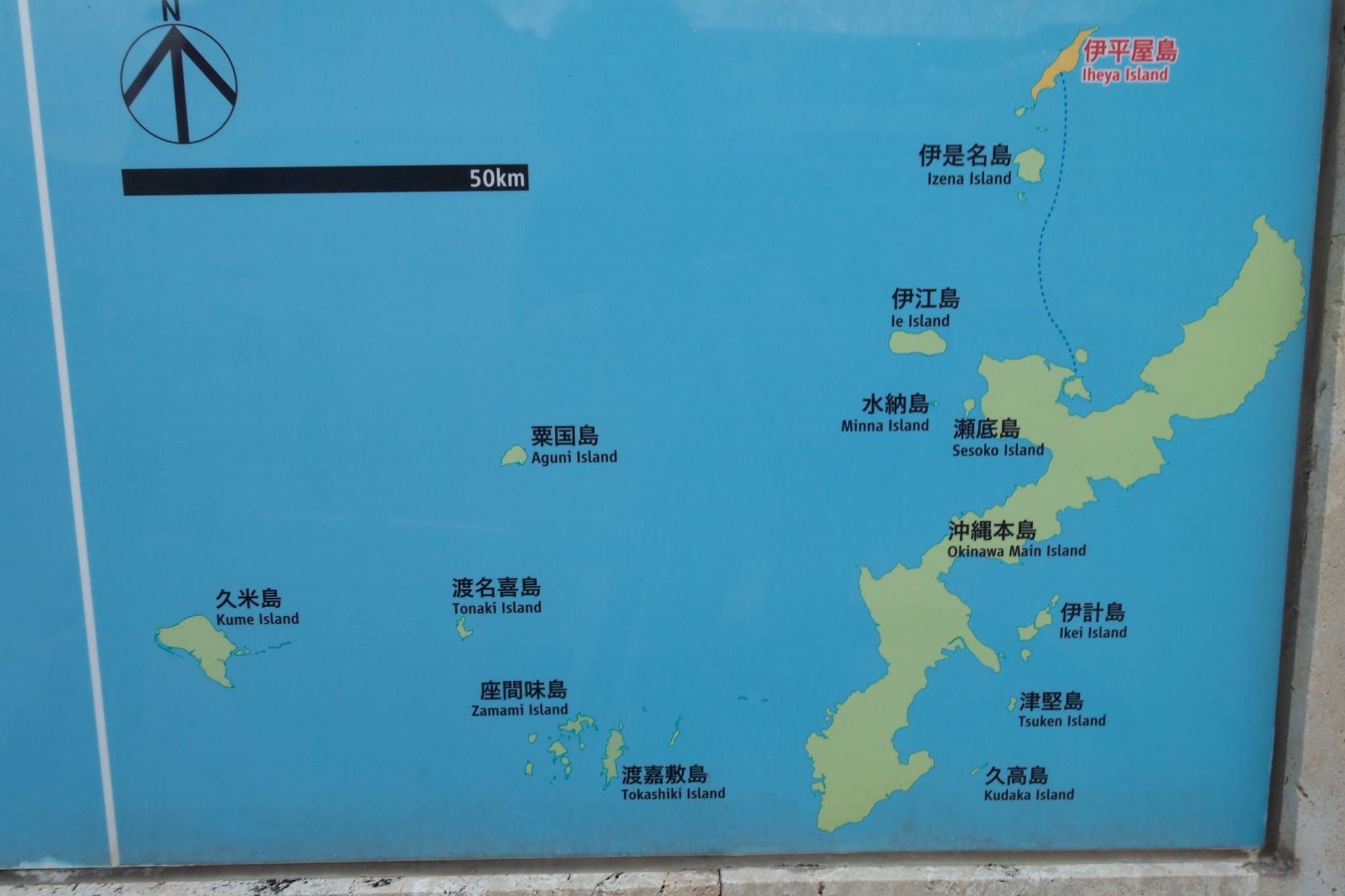 瀬底 ― 水納 ― 伊江 ― 屋我地 ― 奥武 ― 古宇利 ― 伊平屋 ― 具志川 ― 屋那覇 ― 伊是名 ― 藪地 ― 津堅 ― 粟国