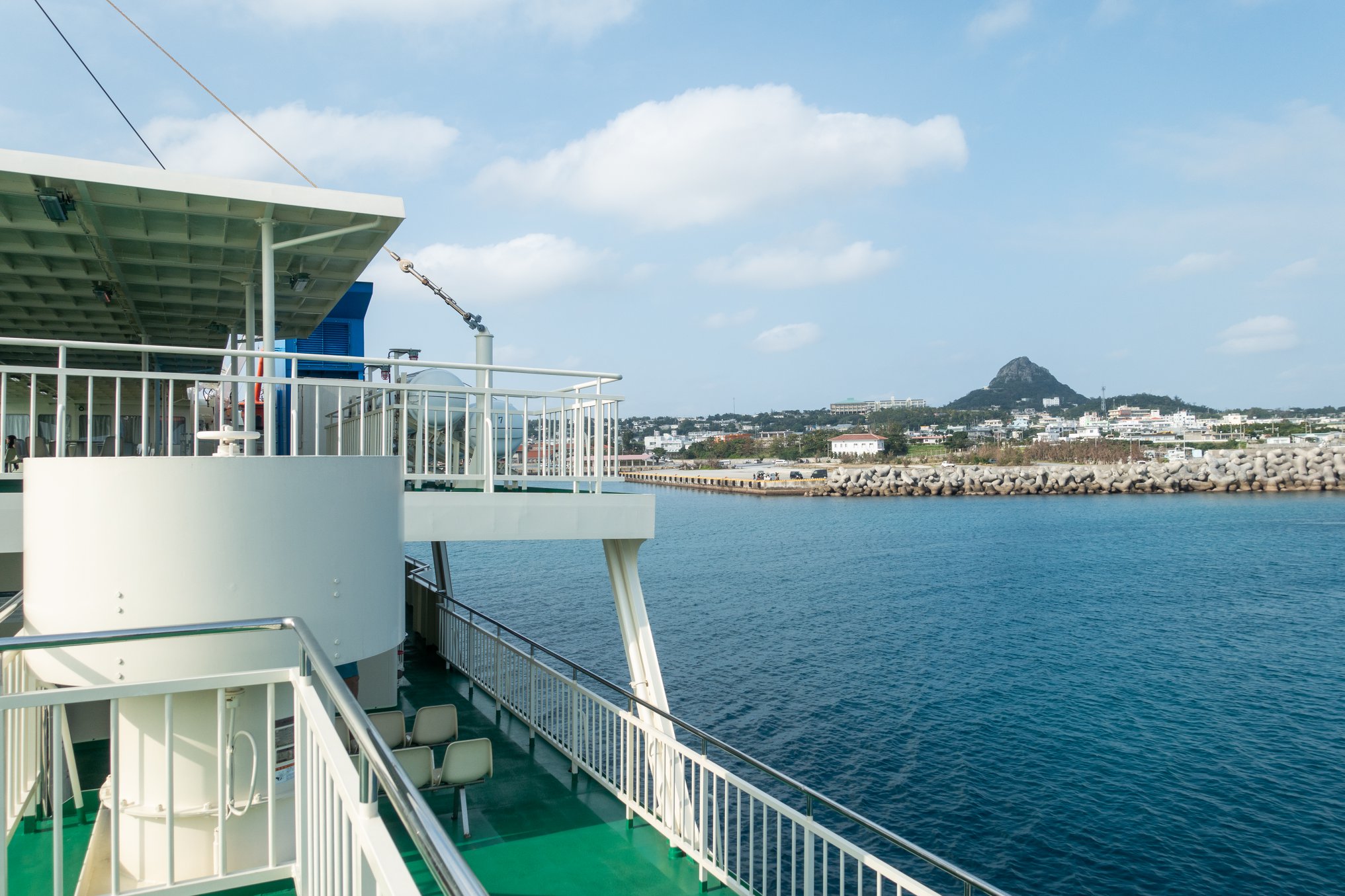 09:30に伊是名ゆきのフェリーが大混雑で出発。伊平屋行きも混雑してるのかなあ、とおそるおそる乗船すると、ガラガラだった。